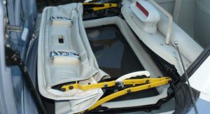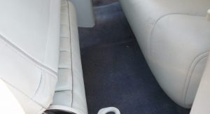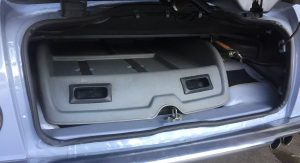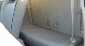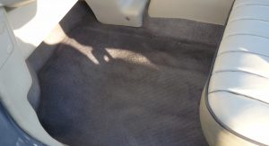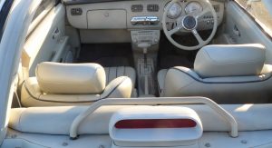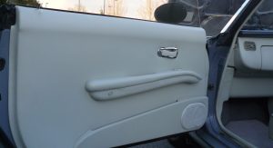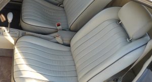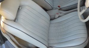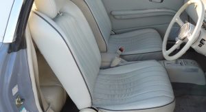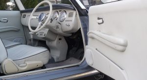 The interior is remarkably retro and includes seats bathed in white leather which extends across the dashboard and steering wheel. The original CD player and radio has also been maintained.