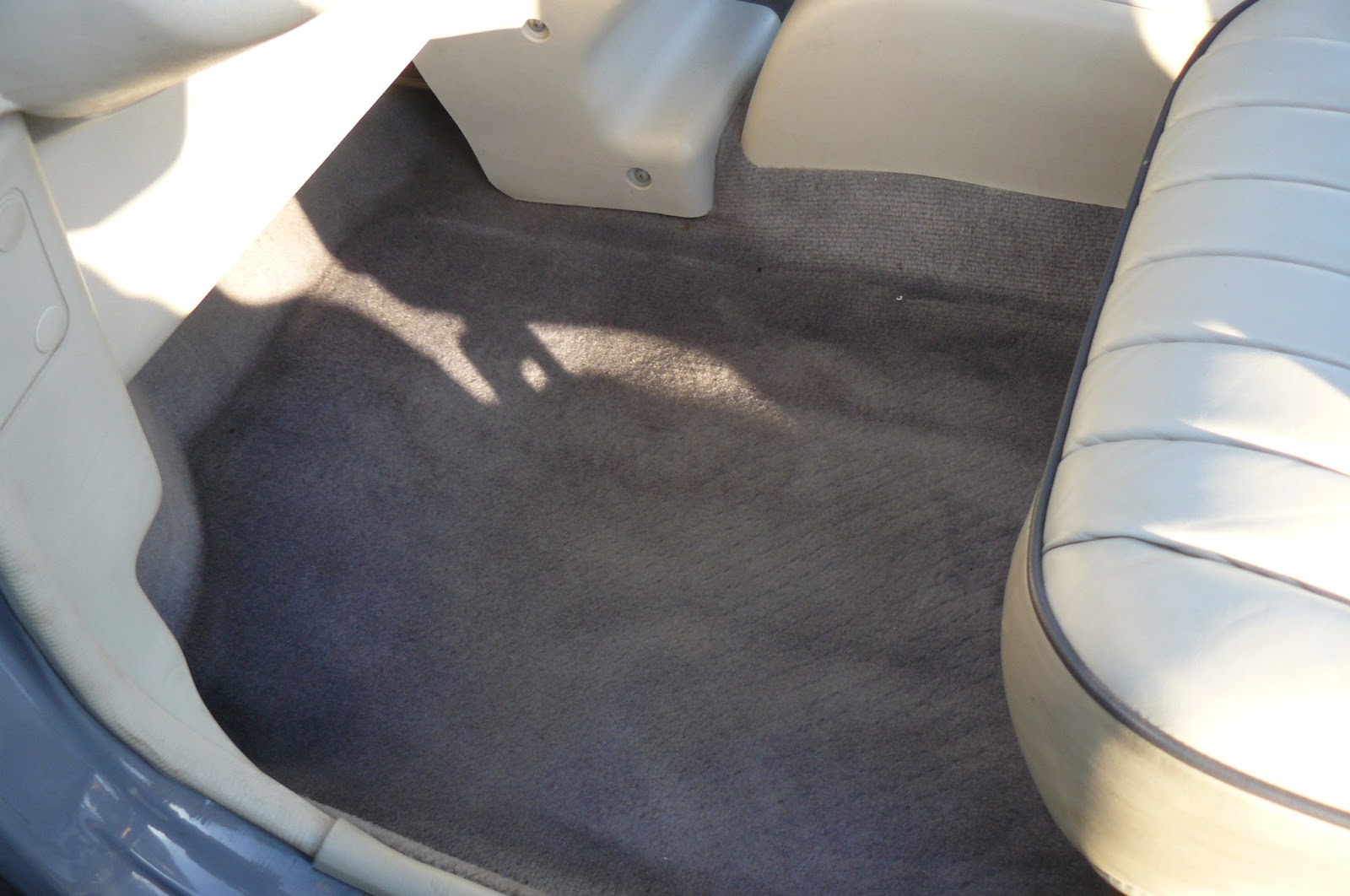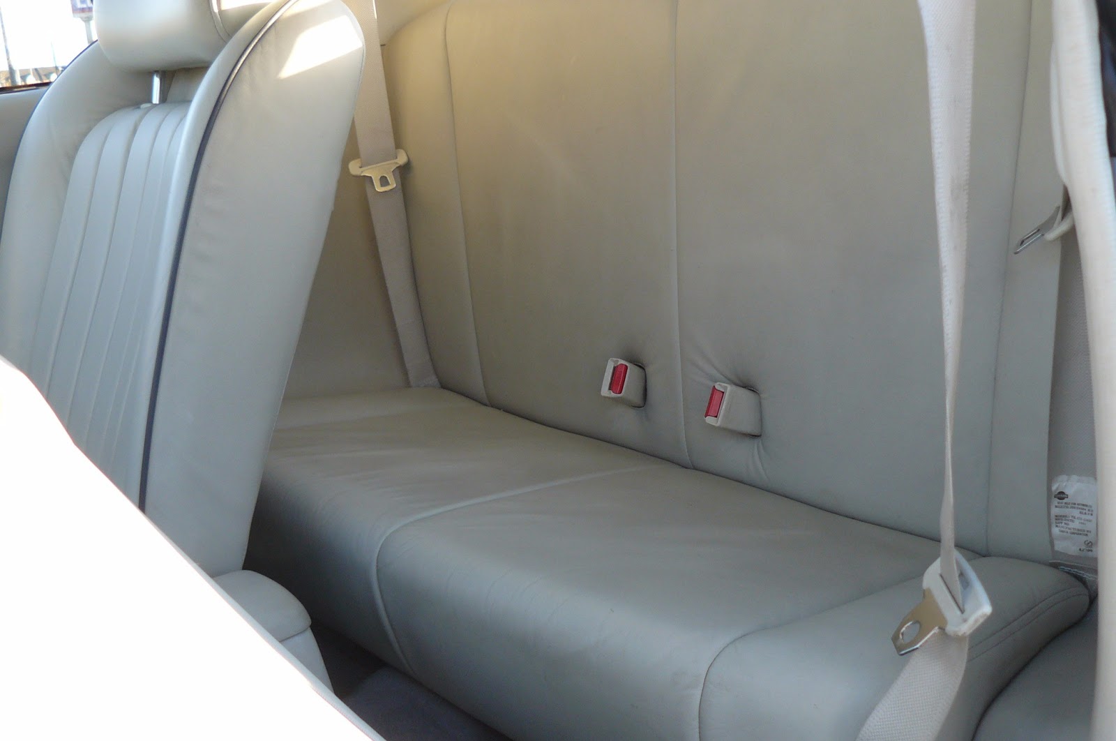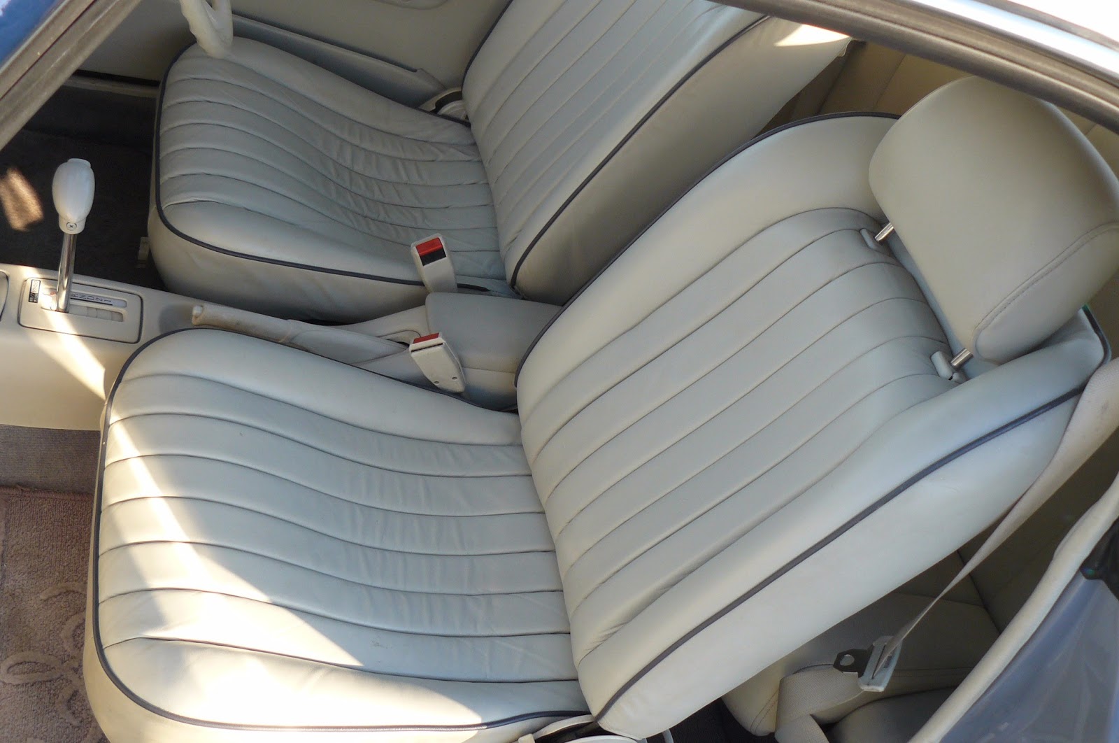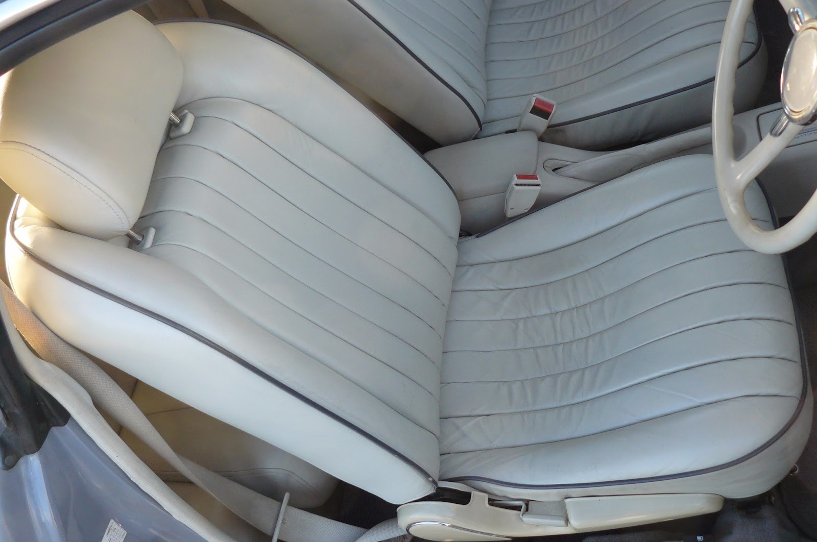 The interior is remarkably retro and includes seats bathed in white leather which extends across the dashboard and steering wheel. The original CD player and radio has also been maintained.