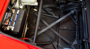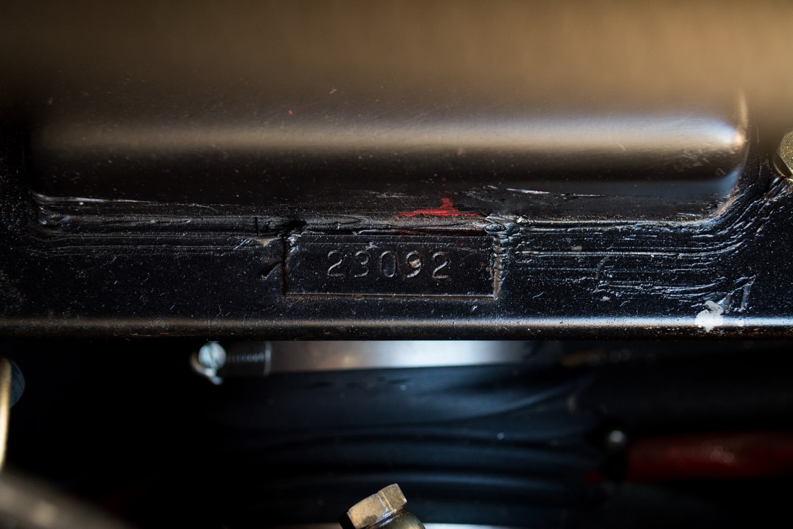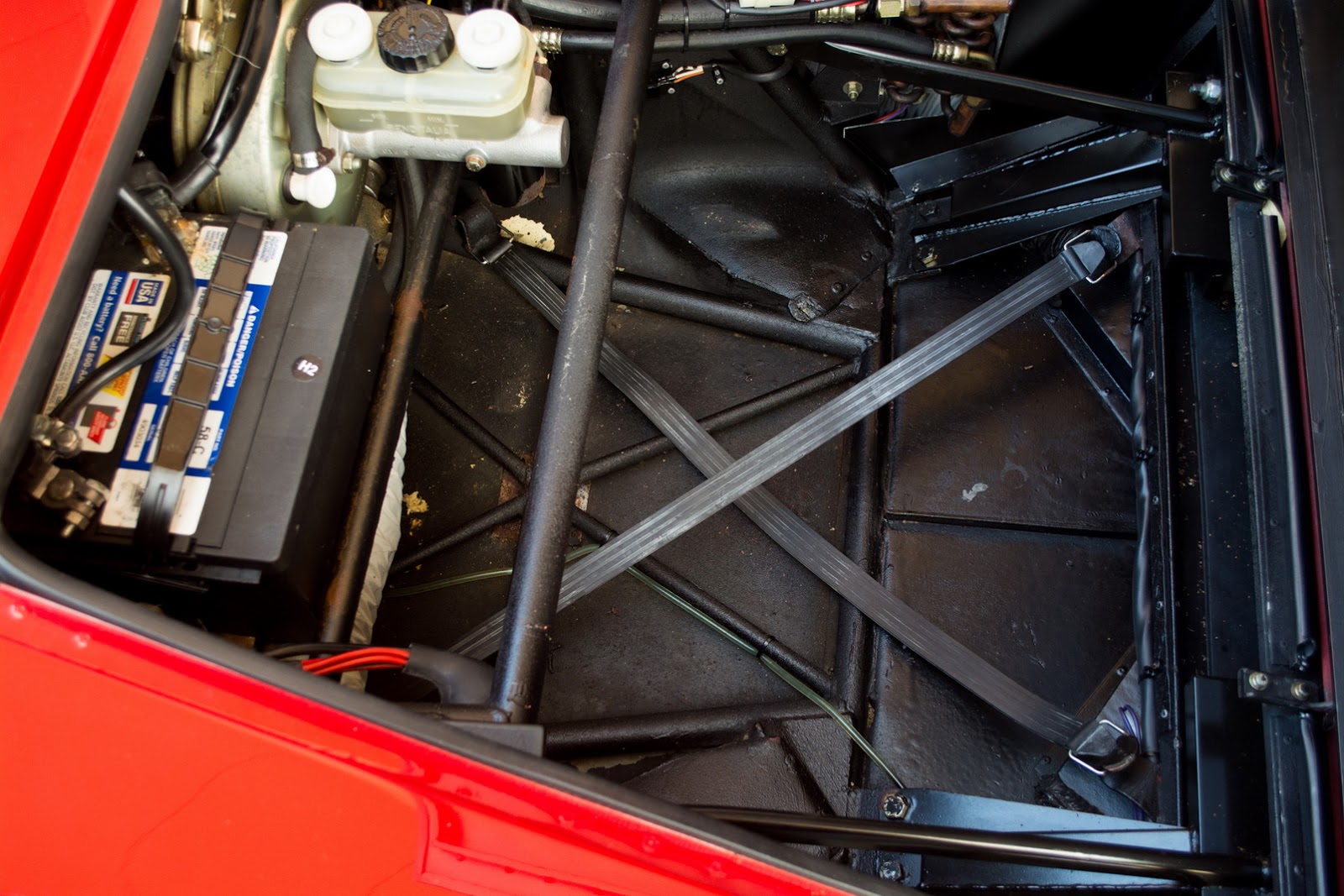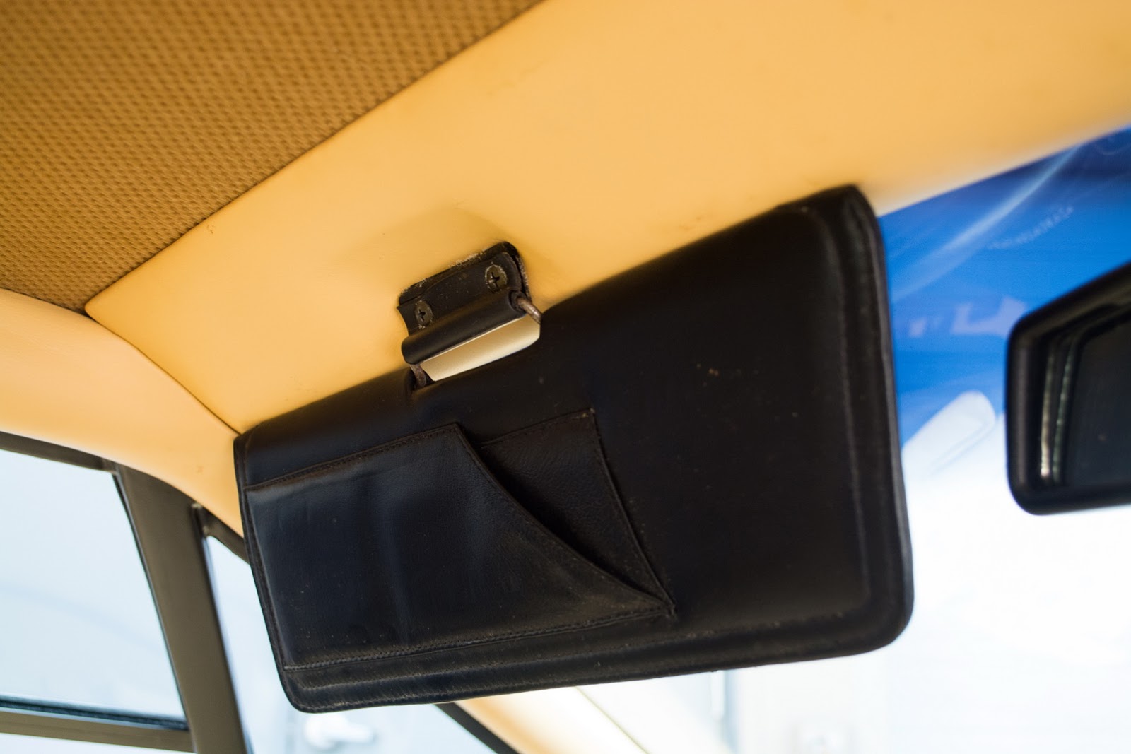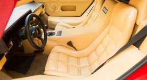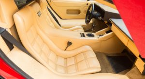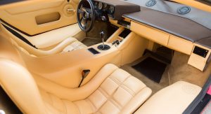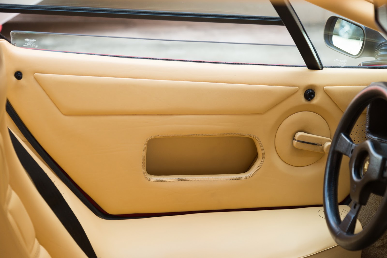 The Rosso Siviglia (Seville Red) paint is also thought to be original, although the rear wing was recently repainted due to stress cracks in the finish. Inside, the Senape (Mustard) leather upholstery is also reported to be original and looks very well preserved judging by these images.