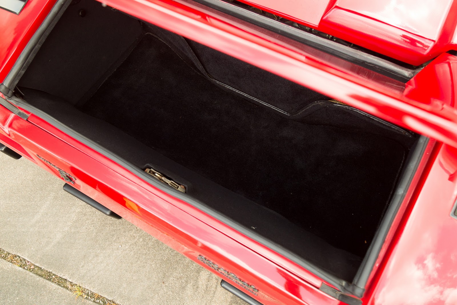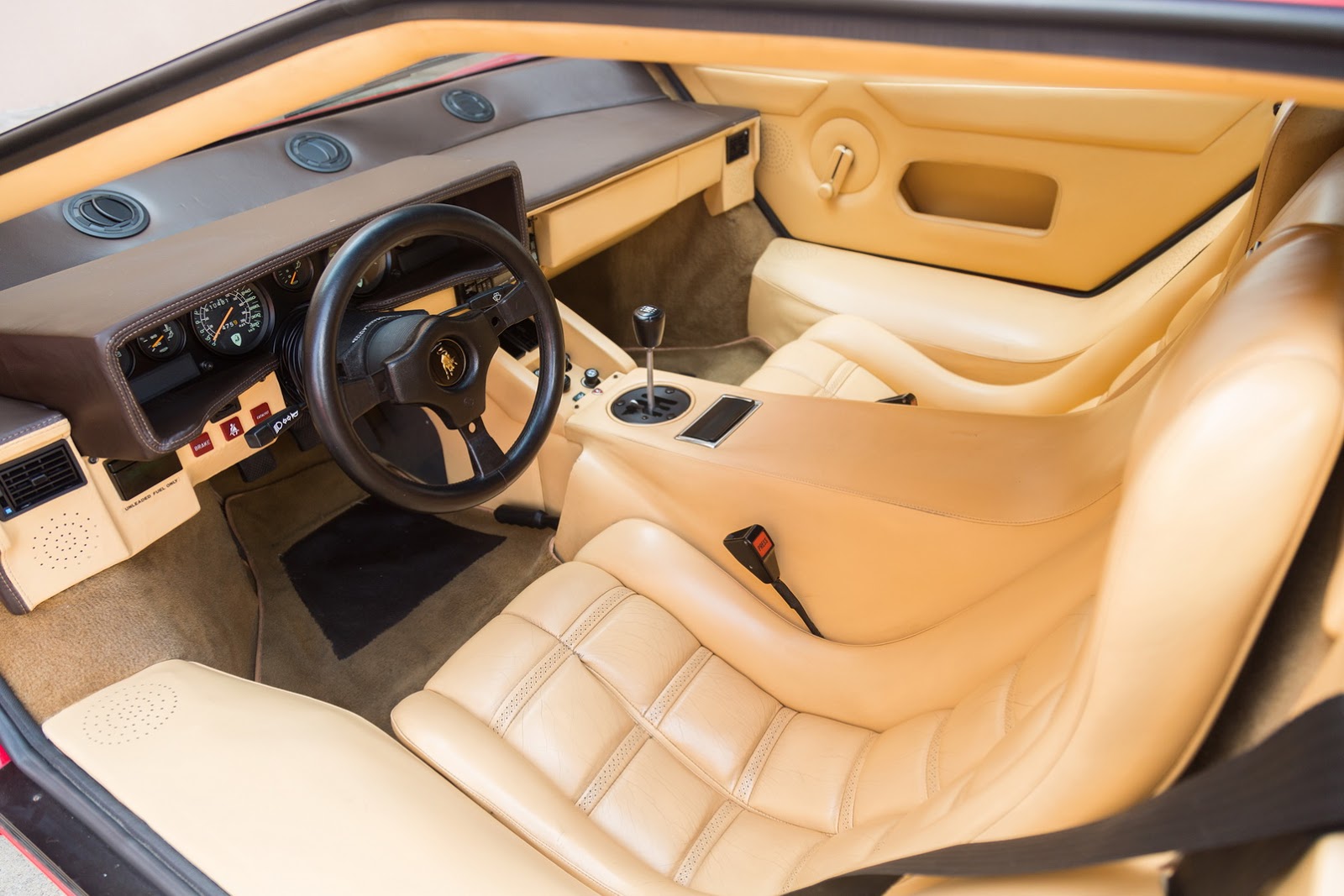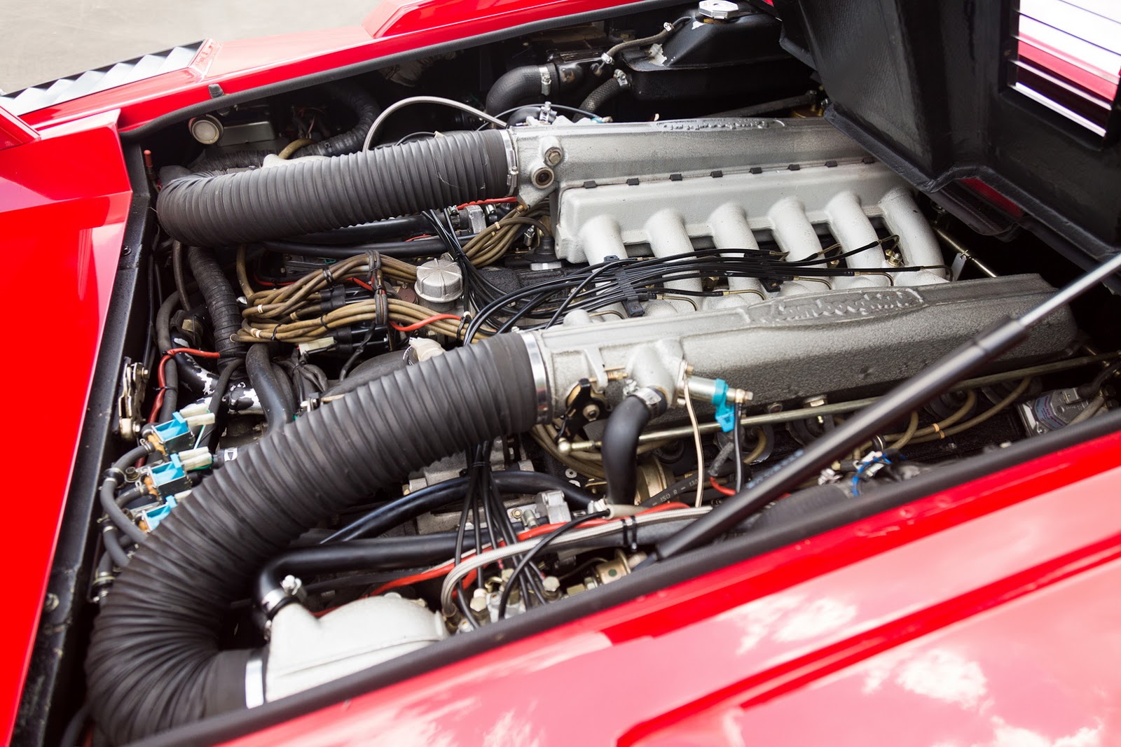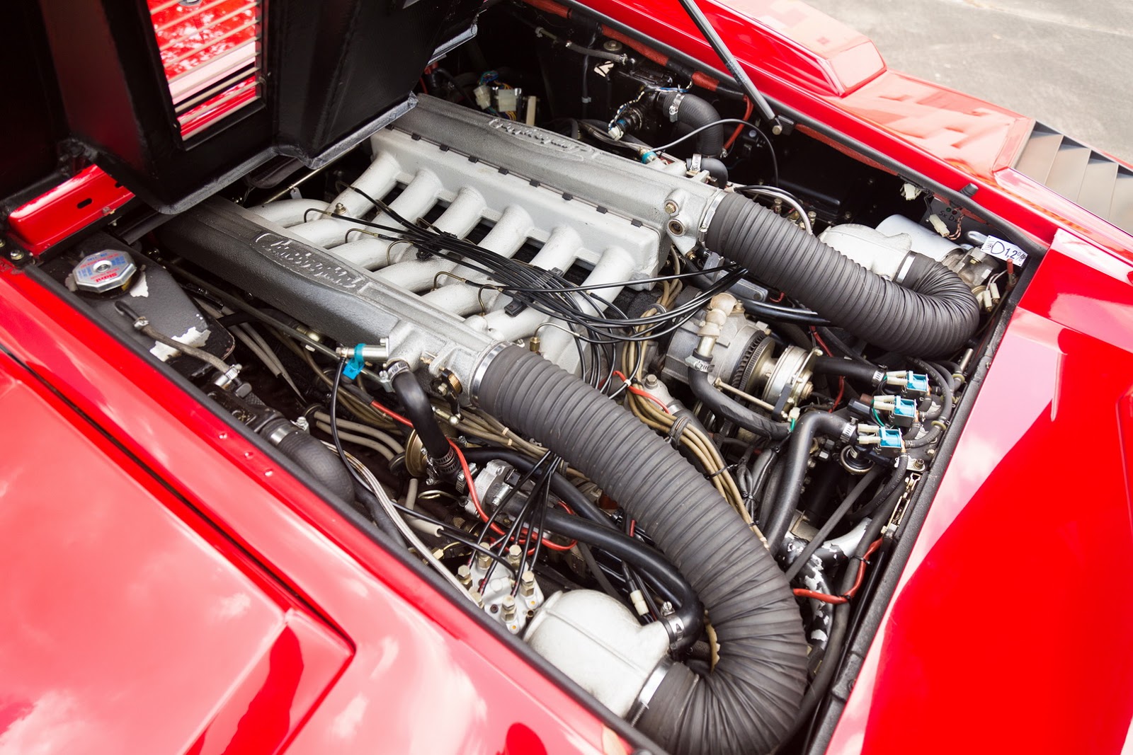 As for performance, the 5.2-liter V12 was good for 420 PS (414 HP) back when this Countach was new. At the beginning of 2017, the car received a substantial tune-up which includes 125-150 psi compression across all cylinders, master cylinder rebuilt by KARPS (rebuilt calipers, new lines & fluid), rebuilt Bosch fuel distributors and warm up regulators, new hatch support, electrical and A/C work plus an engine oil and filters change.