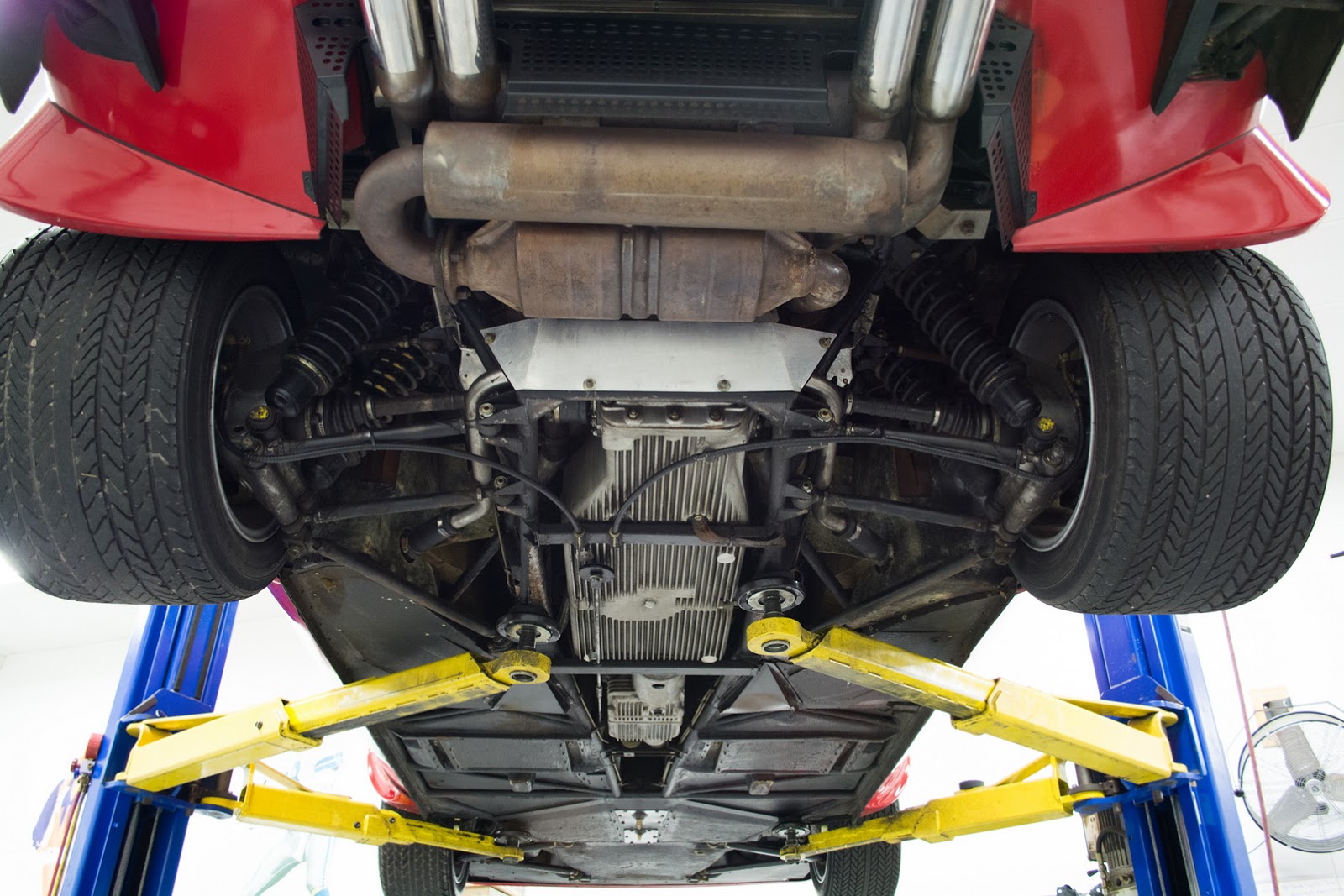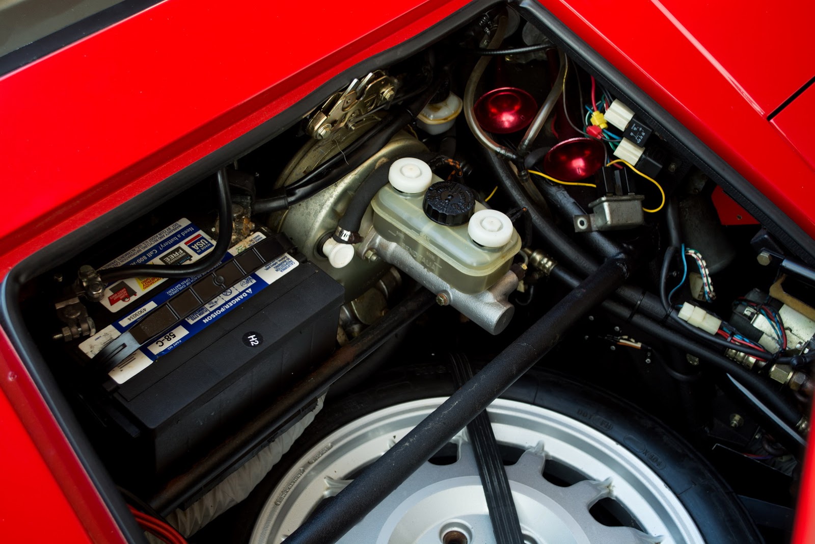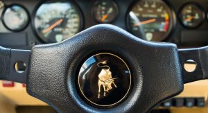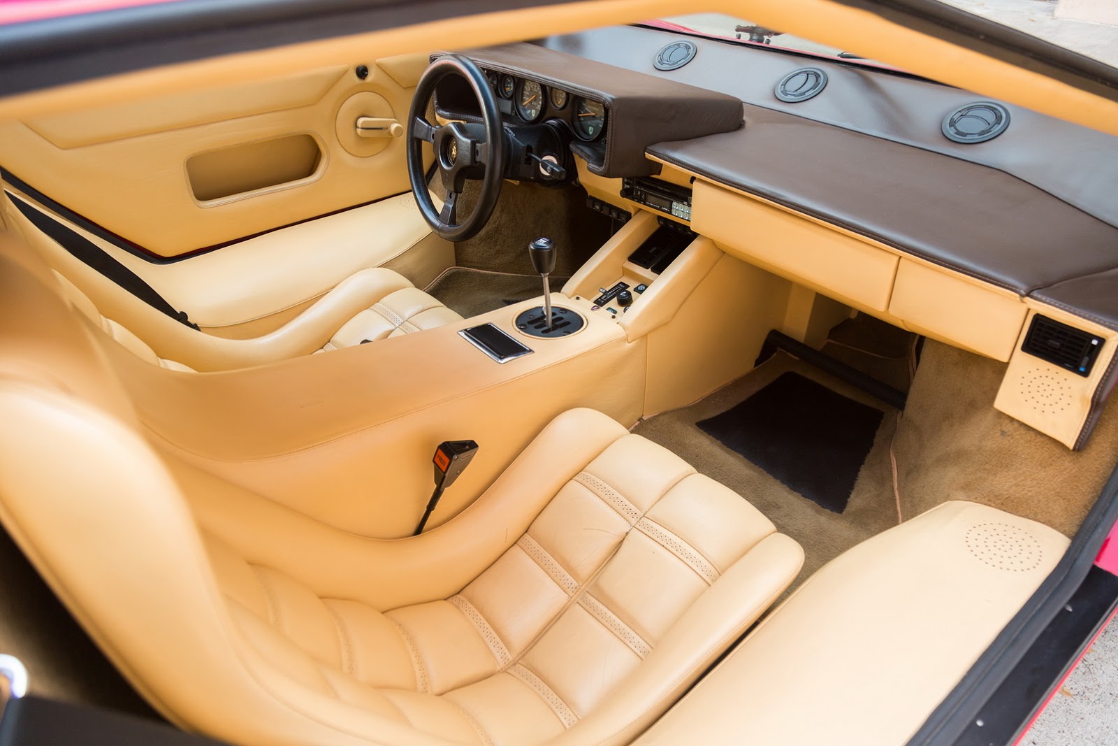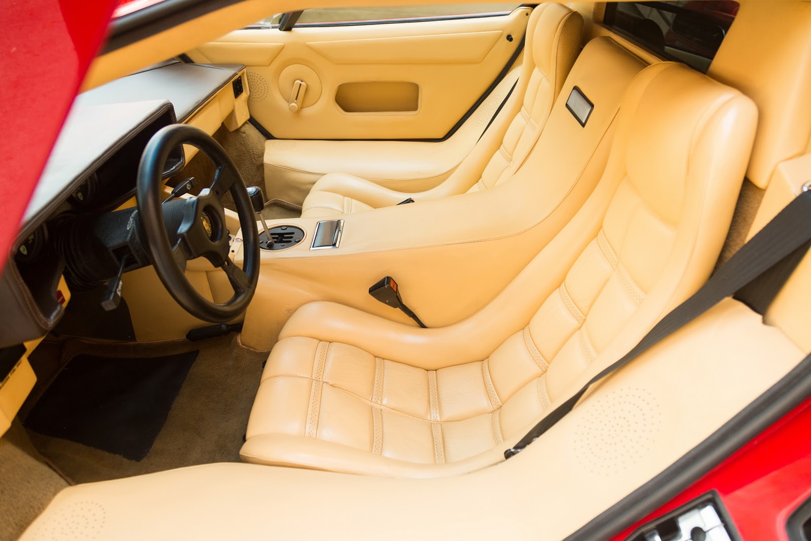 As for performance, the 5.2-liter V12 was good for 420 PS (414 HP) back when this Countach was new. At the beginning of 2017, the car received a substantial tune-up which includes 125-150 psi compression across all cylinders, master cylinder rebuilt by KARPS (rebuilt calipers, new lines & fluid), rebuilt Bosch fuel distributors and warm up regulators, new hatch support, electrical and A/C work plus an engine oil and filters change.