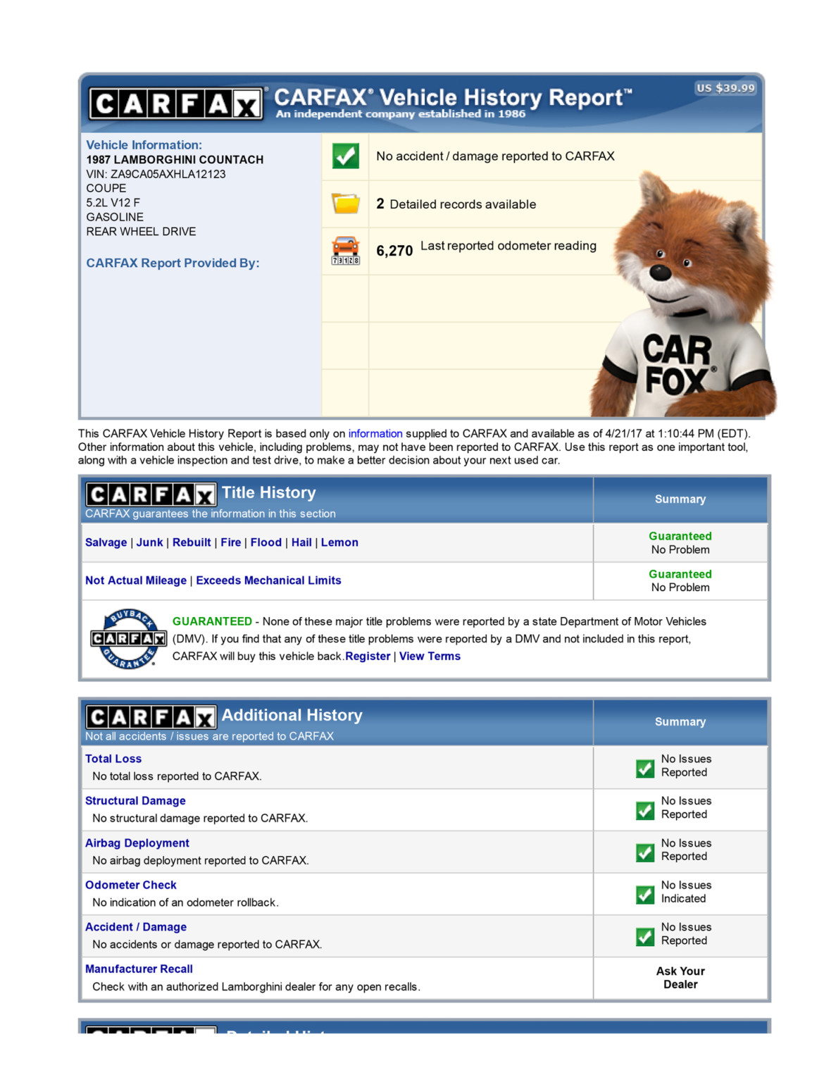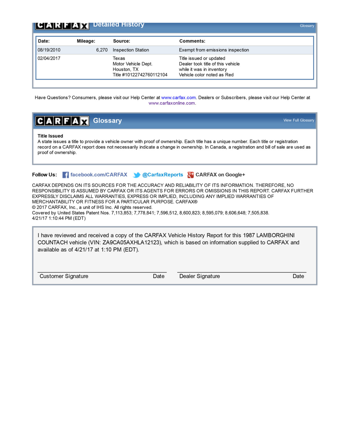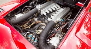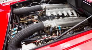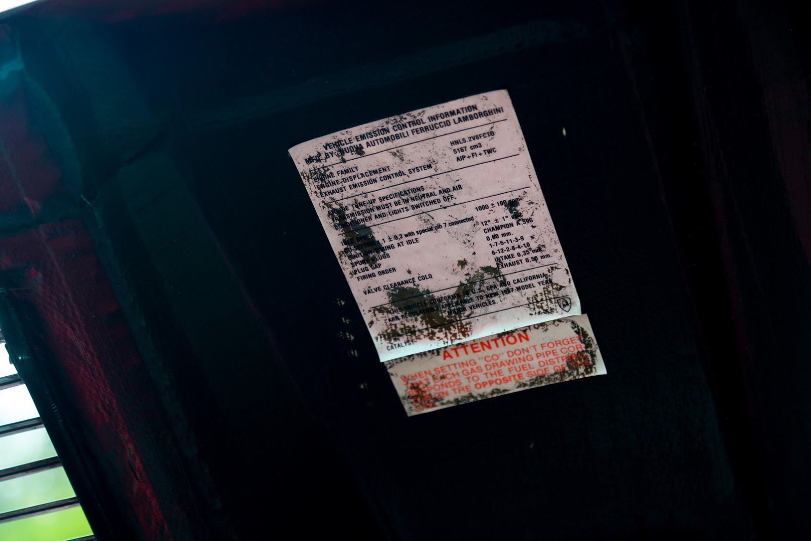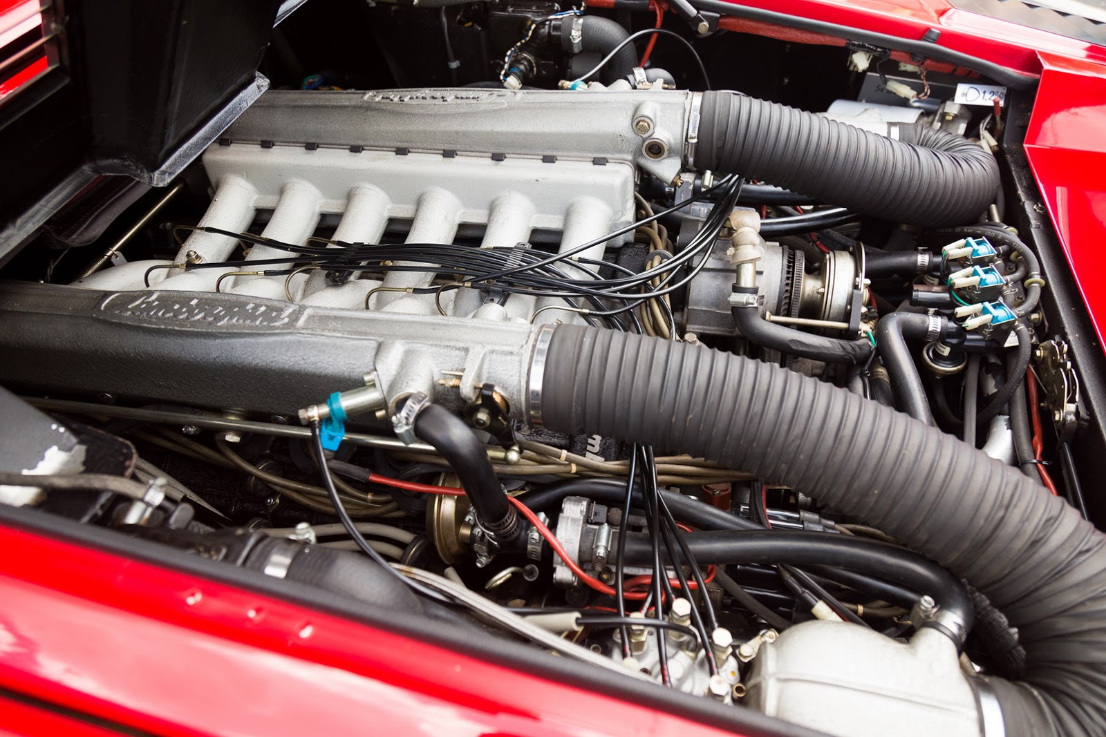 As for performance, the 5.2-liter V12 was good for 420 PS (414 HP) back when this Countach was new. At the beginning of 2017, the car received a substantial tune-up which includes 125-150 psi compression across all cylinders, master cylinder rebuilt by KARPS (rebuilt calipers, new lines & fluid), rebuilt Bosch fuel distributors and warm up regulators, new hatch support, electrical and A/C work plus an engine oil and filters change.