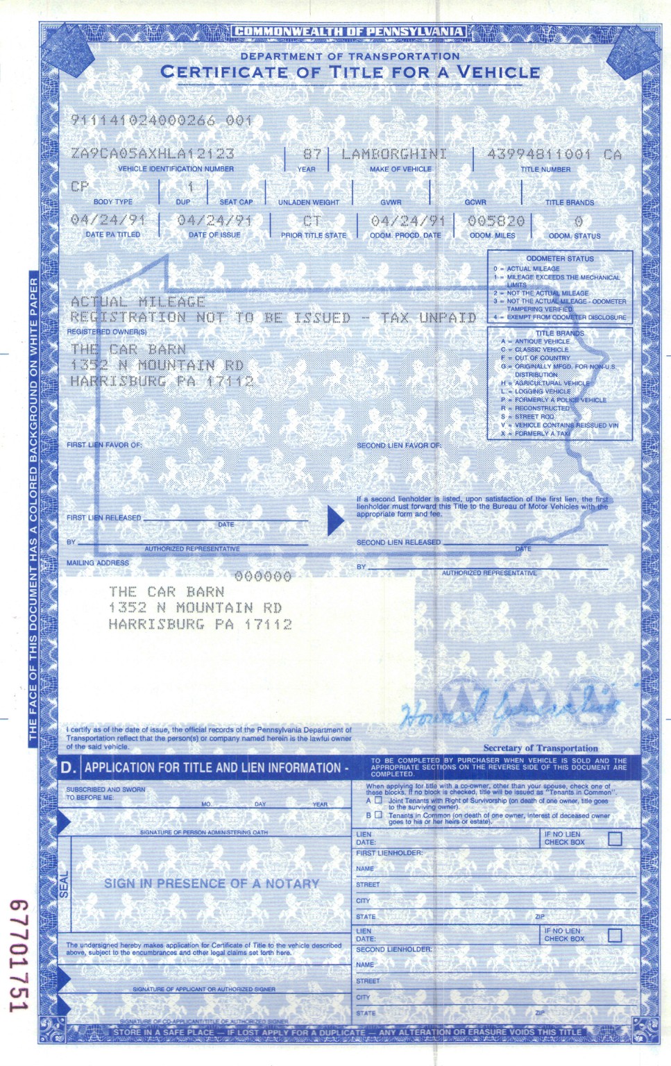 Aside from an Alpine CD stereo system, this car is believed to be in its original spec, wearing its original tires and still packing its 5.2-liter V12, mated to a 5-speed manual gearbox.