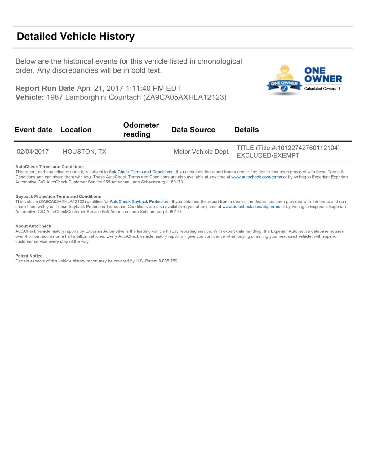 According to the Bring a Trailer ad, its next owner will receive the car’s warranty/maintenance book, factory tool roll and jack, a pair of Lamborghini leather work gloves, an unused spare tire assembly, clean Carfax and AutoCheck reports and a clean Texas title.
