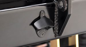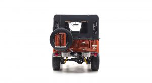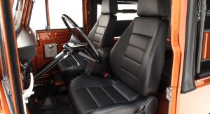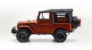 For starters, the copper paintjob is sure to make it stand out among the legions of these Japanese workhorses still on (and off) the road. The wheels, soft top, and interior have been fitted in black, with heated Corbeau seats and marine-grade audio system. It also features LED headlights, power steering, tow hitch… even a bottle opener in the front bumper that’s become the company’s signature touch.