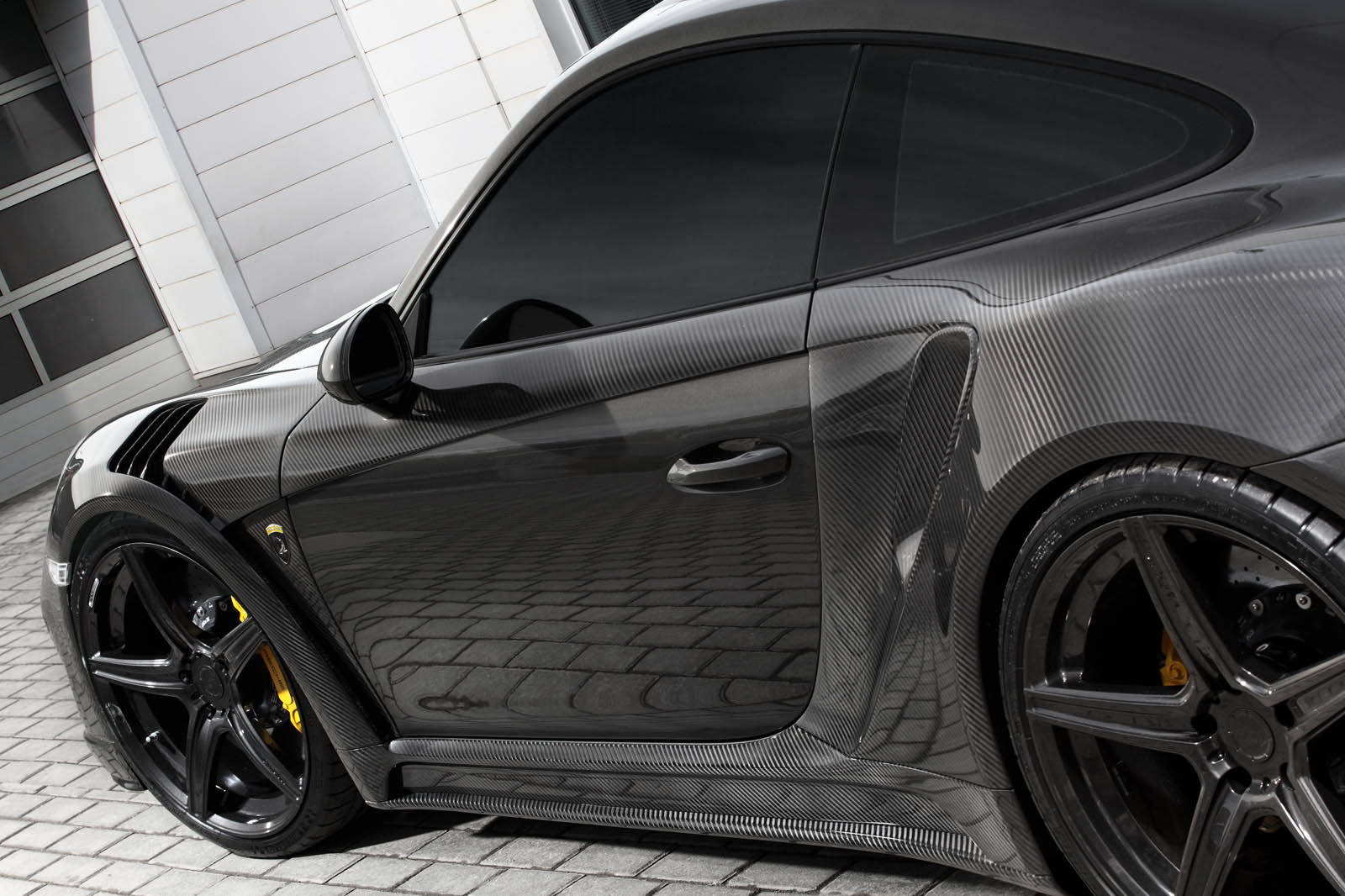 The Russian tuning house hasn’t just upgraded the iconic German sports car, but rebodied it entirely in carbon fiber. By which we don’t mean it added some lightweight woven aerodynamic elements – it’s replaced every last panel with the stuff, resulting in a vehicle that’s both lighter and rather striking to look at.