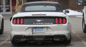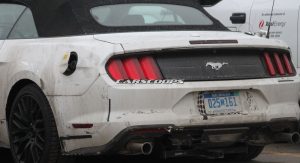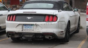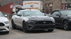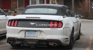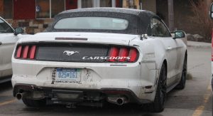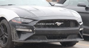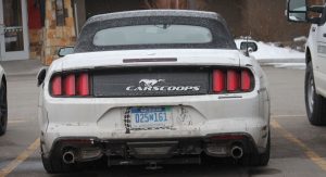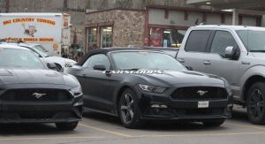 Recently, three Ford Mustang prototypes were snapped in the midst of testing in Colorado and while only two have been adorned in the fresh skin of the 2018 model, all are alleged to have been installed with the 2.3-liter turbocharged four-cylinder. Compared to the GT V8, they’re missing the grille fangs and have two instead of four exhaust pipes.