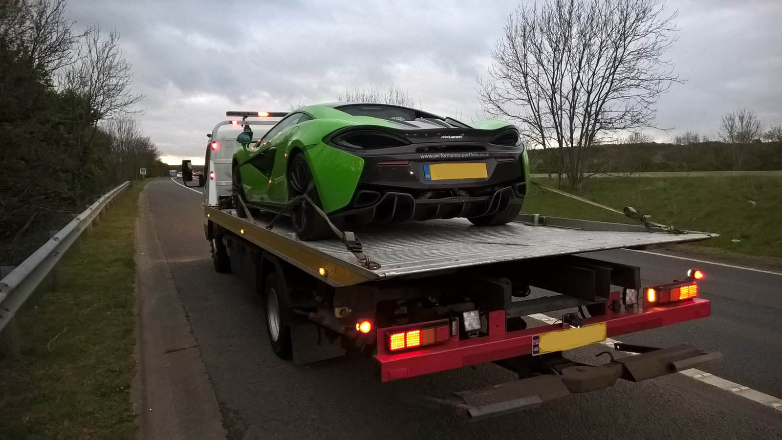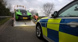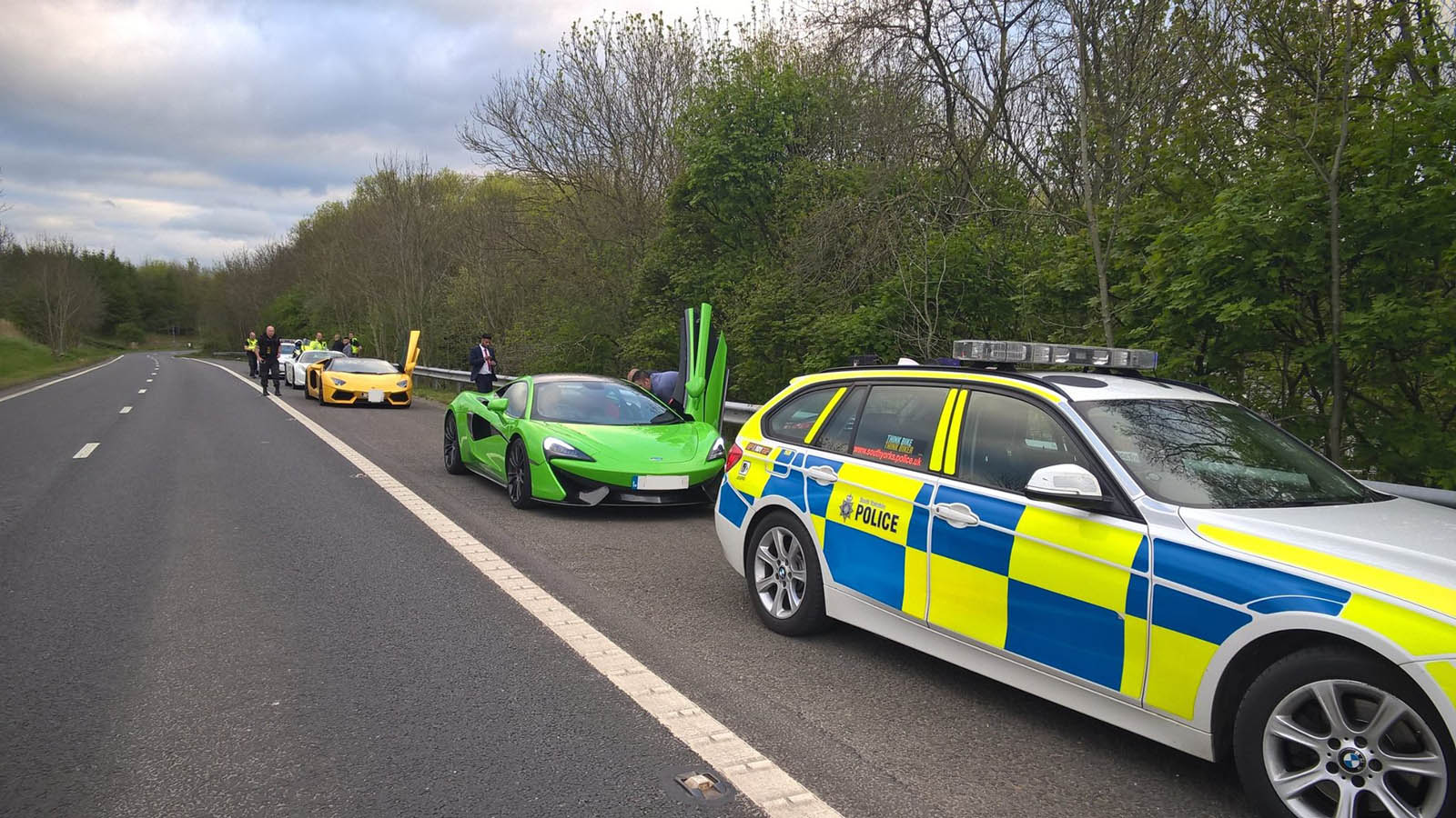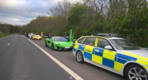 According to the South Yorkshire Police, the trio had rented a yellow Lamborghini Aventador (Roadster from the look if it), an unidentified white Ferrari (looks like a 458 Italia), and a green McLaren 570S. Keen to see what they could do (and which was faster in a straight line), the drivers each took a lane across the three-lane highway, slowed traffic down to “a very slow speed,” then accelerated off down the cleared stretch of roadway. Then they did it again.