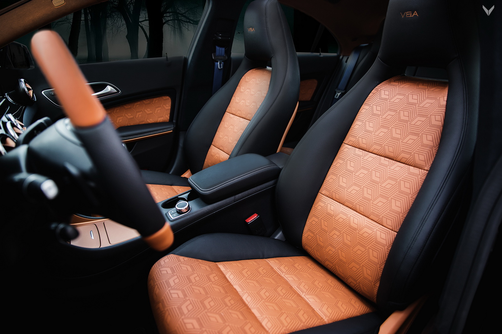 Vilner are mostly known for creating custom interiors, and so naturally this Mercedes-Benz CLA received a few special touches inside, which reflect the exterior modifications. These include the Alcantara upholstery, applied in two different colors – ‘Caramel’ and ‘Black’, which create a floating effect and a sense of extra room for the rear seat passengers.