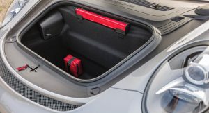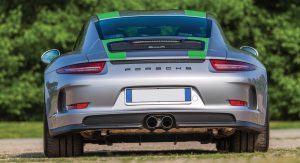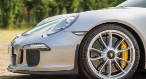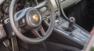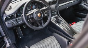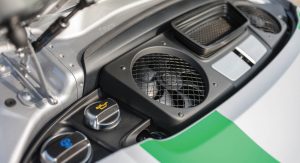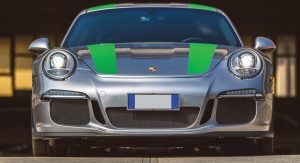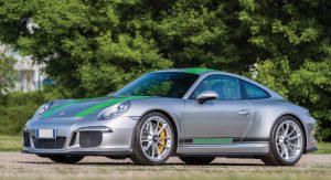 Decked out in silver with green stripes and that delicious houndstooth upholstery, this 235th example made has fewer than 1,000 kilometers (620 miles) on the odometer and is listed in “virtually as-new condition.” Of course it packs the 500-horsepower, naturally aspirated 4.0-liter boxer six from the GT3 RS, paired with a six-speed manual to offer the ultimate purist’s driving experience, and was specified wit the optional 90-liter fuel tank.