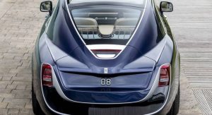 Both the rear and cabin are also dramatically different to a Wraith or any other Rolls. One interesting element of the interior is that at the press of a button, a bottle of champagne rises from the rear.
