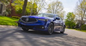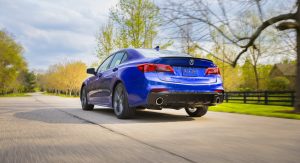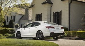 As for the all-new TLX V6 A-Spec trim, it features a matte-black diamond pentagon grille with a dark chrome surround, exclusive 19″ alloys finished in Shark Gray, flared side sills, smoked LED taillights and 4-inch round dual exhaust finishers. Completing its exterior look is a matte-black side window surround as well as A-Spec badging on the front fenders and rear decklid. Color choices are five in total and include the trim-exclusive Still Night Blue Pearl for the exterior and one of two unique interior schemes – either Black with Alcantara or Full Red.