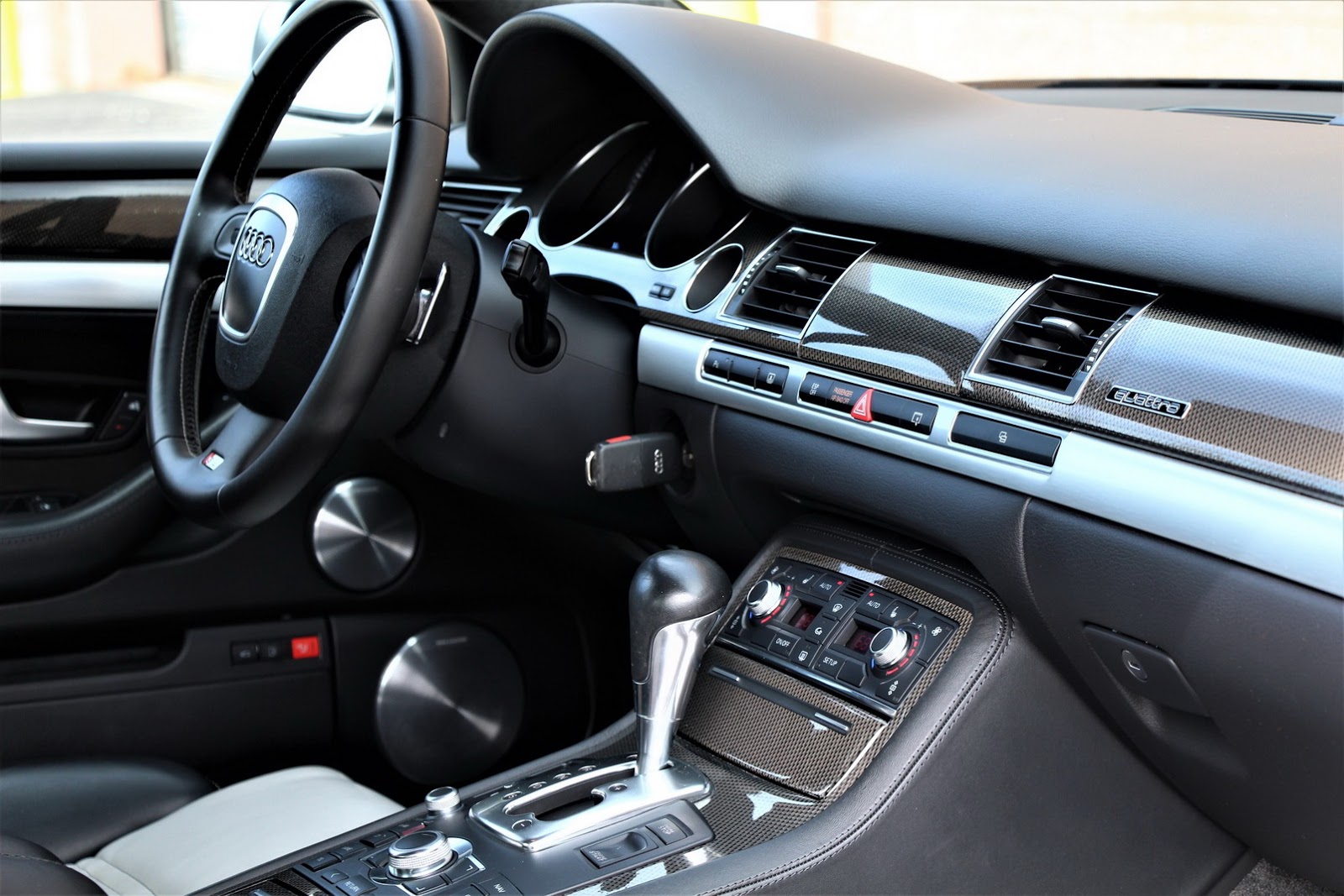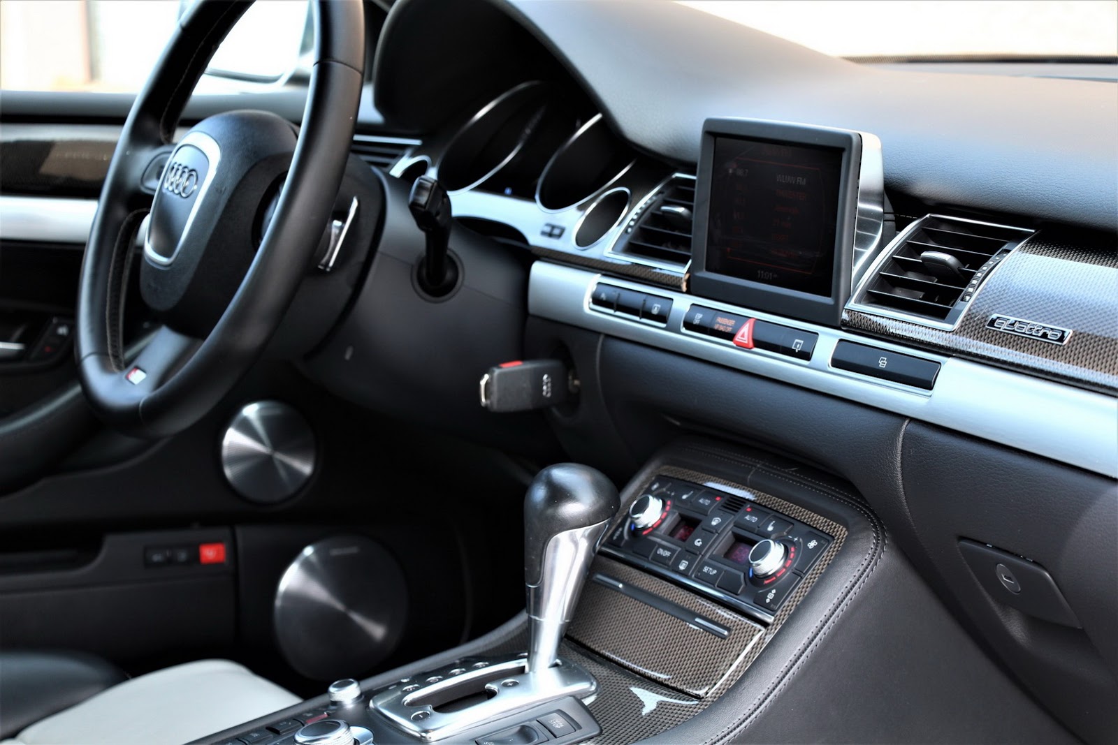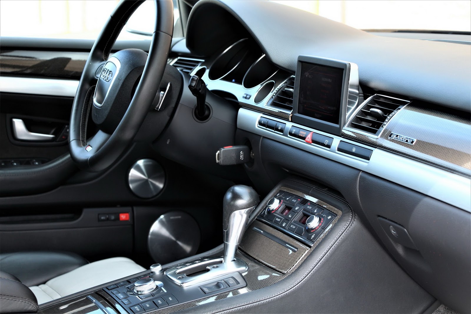 According to the Bring a Trailer ad, this 2007 S8 features an integrated radar detector and front fascia fill panel, plus options such as the Bang & Olufsen stereo, two-tone leather and Audi’s Premium Package, meaning a retractable rear sunshade and heated rear seats.