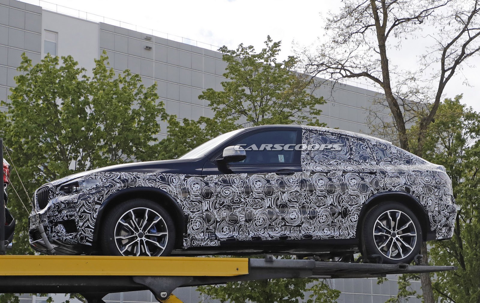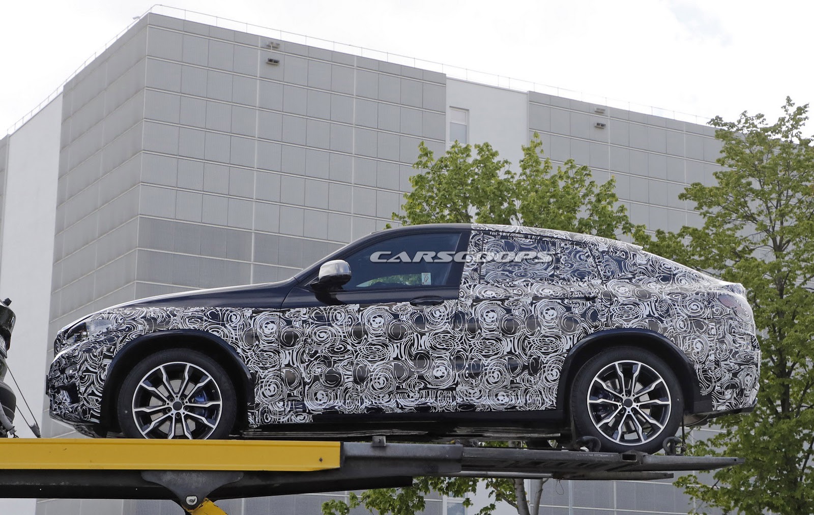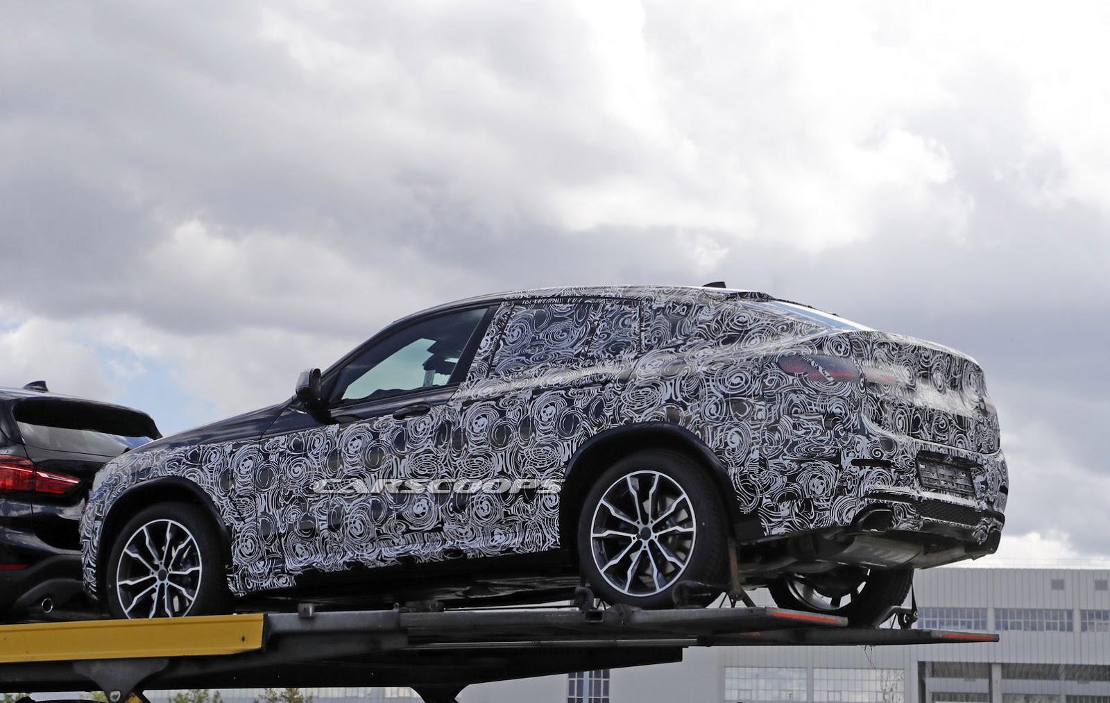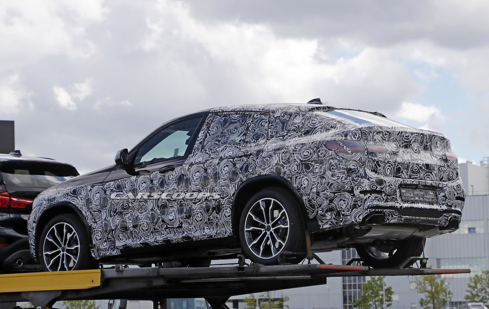 Spotted alongside other BMW and Mini prototypes, this X4 is wearing surprisingly light camouflage, letting us see its new belt line, as well as what appears to be a more muscular rear end with a slightly lower profile.