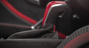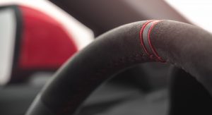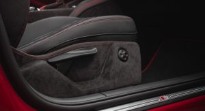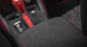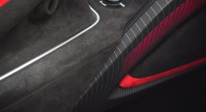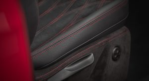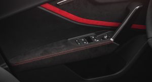 Other customer touches include black air vents with bright red inner sections, a red gear selector, red Alcantara on the doors and distinctive floor mats.