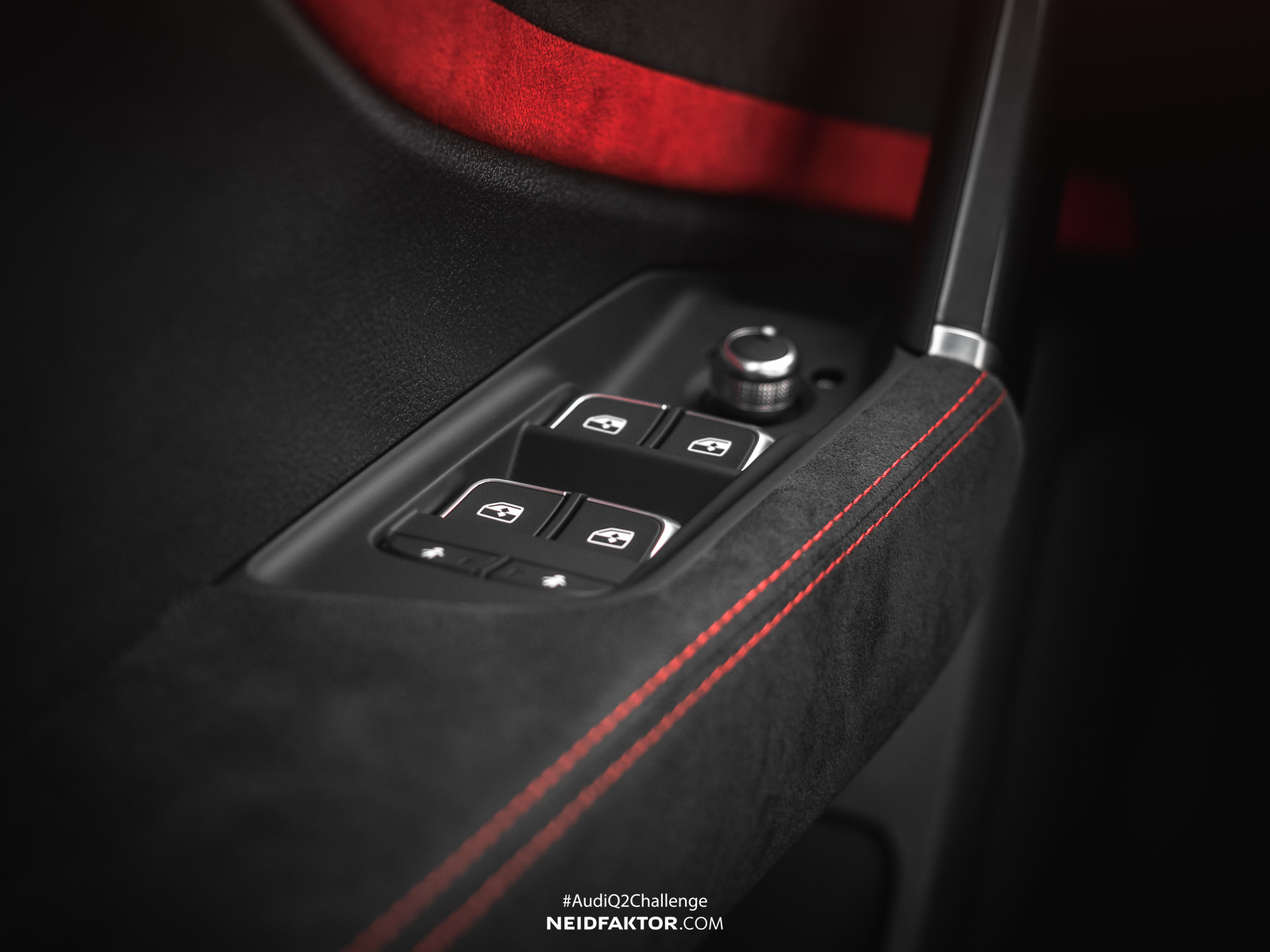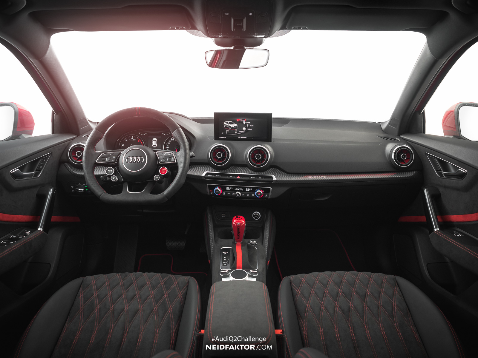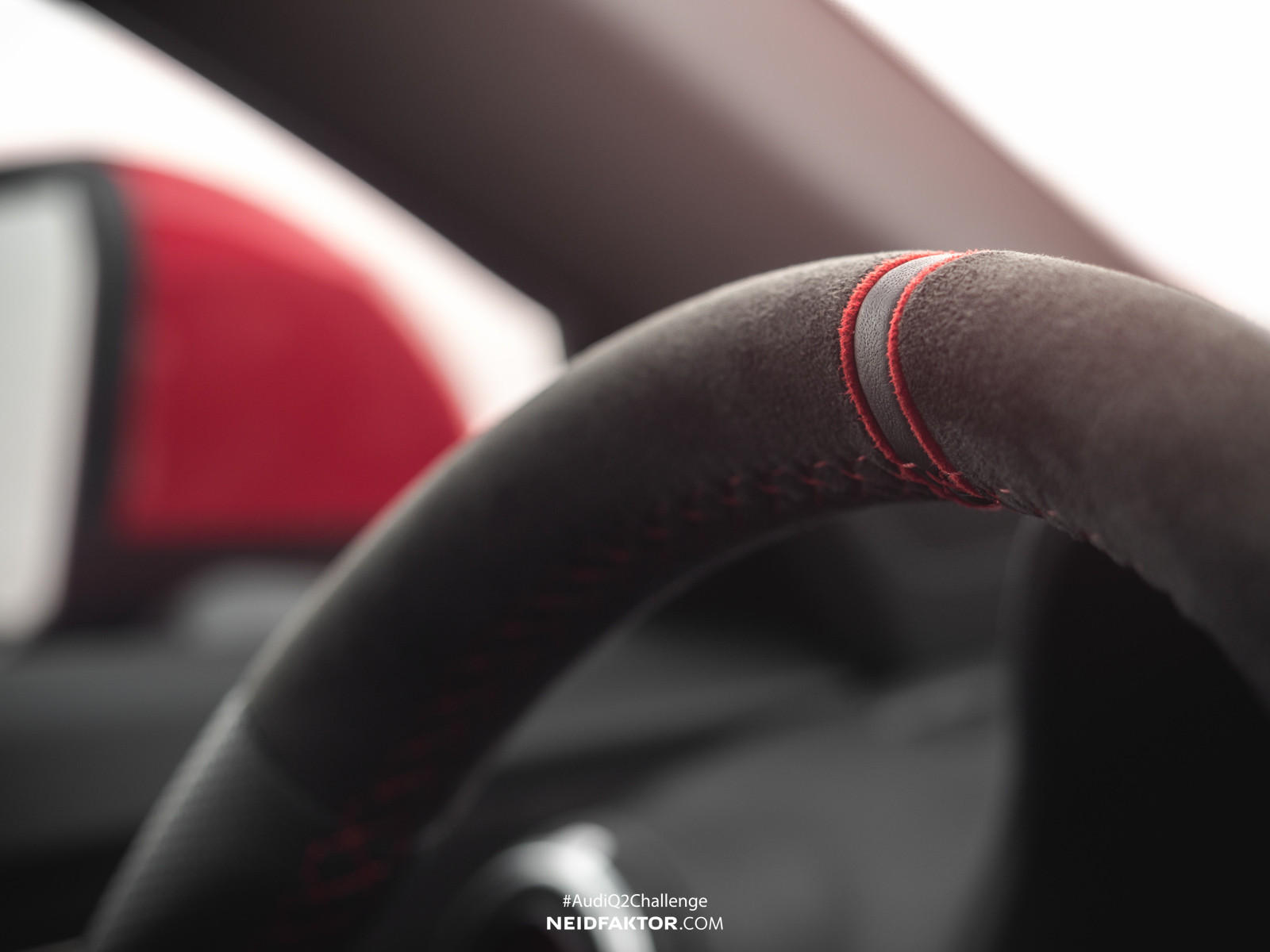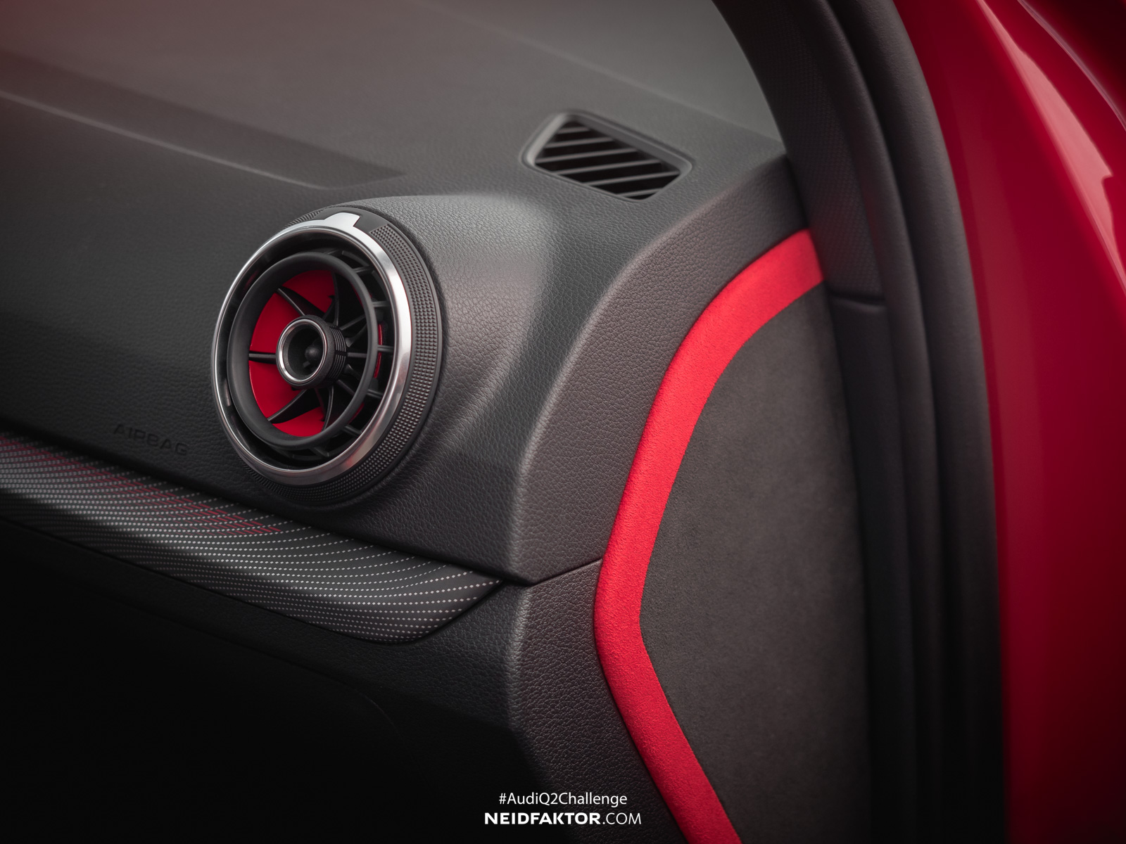 Despite this, German interior specialists Neidfaktor thought it could do better and in our opinion, have knocked it out of the park with this customized Q2. Certainly the most significant interior change enjoyed by this Q2 is the fitment of a flat-bottomed steering wheel almost identical to that of the second-generation Audi R8. It has all of the same buttons, including the bright red Start/Stop button, and also includes a red and black stripe in the center.