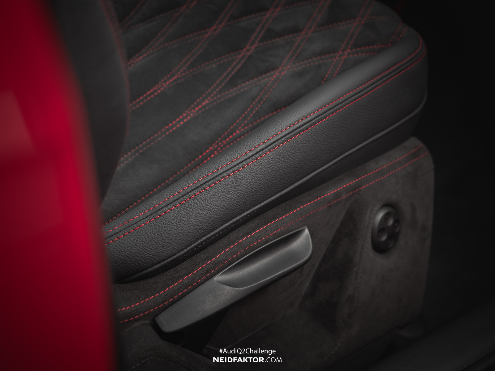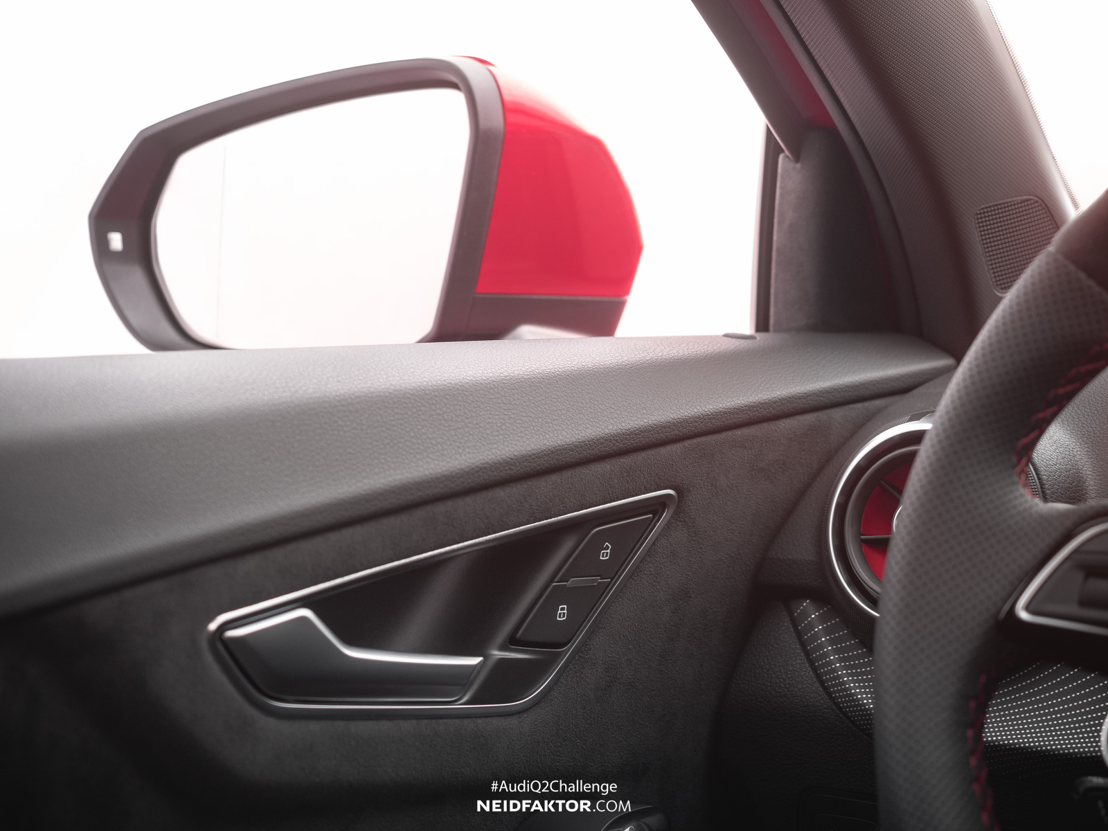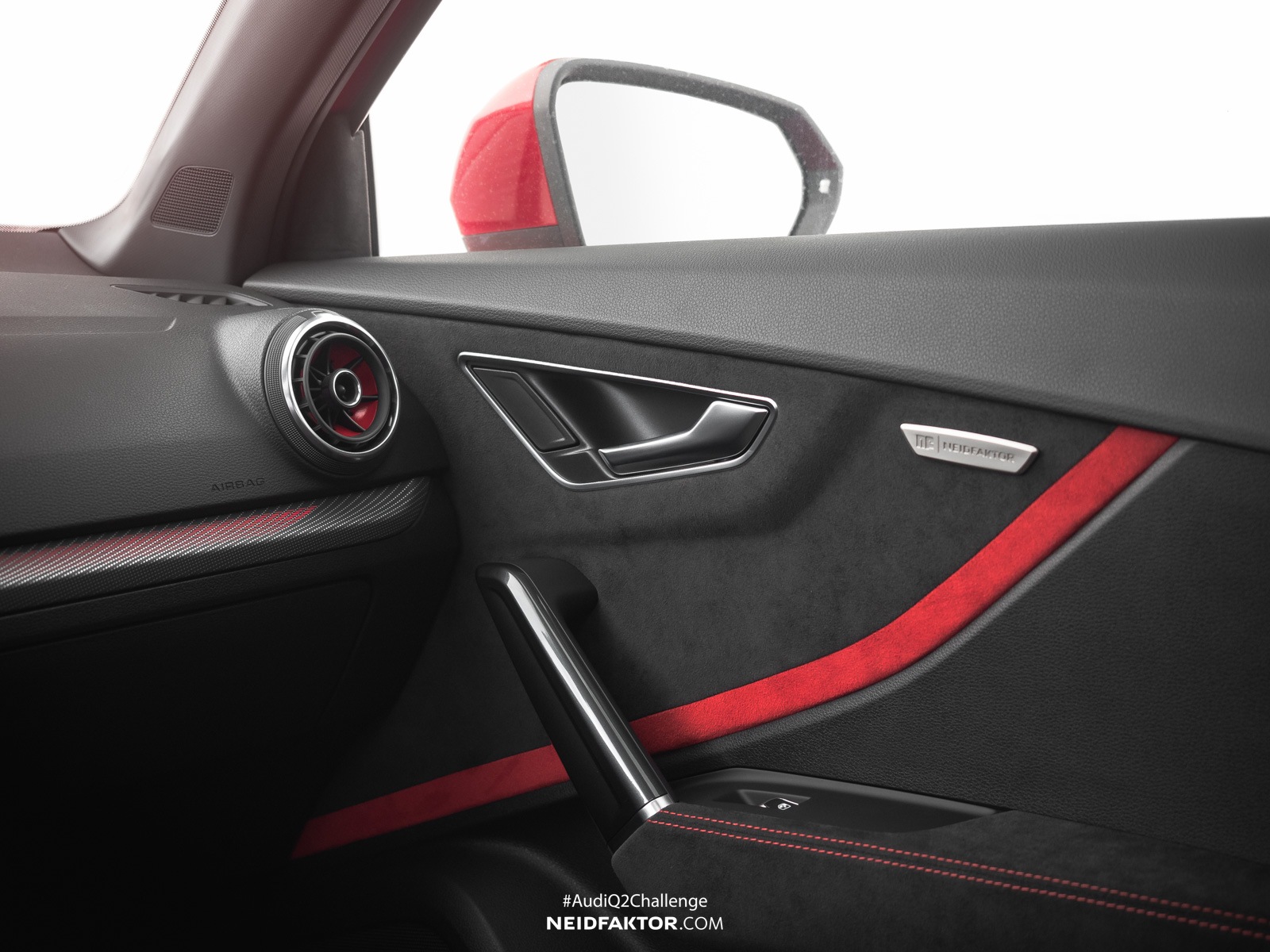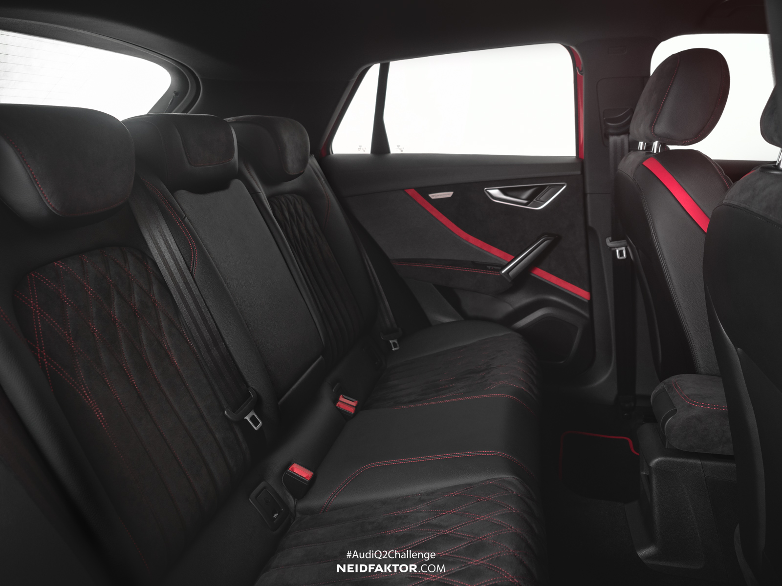 Despite this, German interior specialists Neidfaktor thought it could do better and in our opinion, have knocked it out of the park with this customized Q2. Certainly the most significant interior change enjoyed by this Q2 is the fitment of a flat-bottomed steering wheel almost identical to that of the second-generation Audi R8. It has all of the same buttons, including the bright red Start/Stop button, and also includes a red and black stripe in the center.
