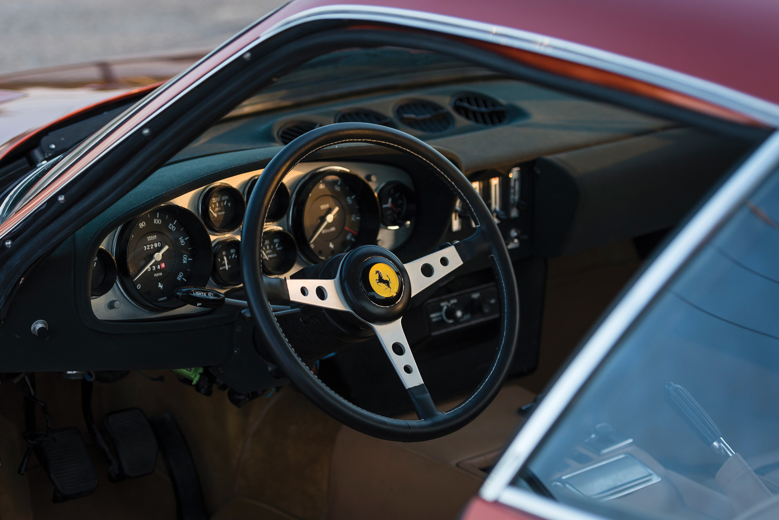 Among Daytonas, factory Spiders and Competizione models tend to sell for the highest prices, with RM having sold a coupe of those roadsters for $3.3 million apiece. Harrah’s will be offered without reserve, but is sure to fetch well more than the million bucks it looks. (Photos by Robin Adams, courtesy of RM Sotheby’s.)