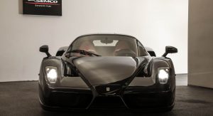 Like this one, for example. Listed for sale by Semco Exclusive Cars out of Munich, Germany, this 2004 Ferrari Enzo has 6,400 miles on the odometer, and carries an asking price of €2.2 million – or roughly equivalent to $2.4 million at current conversion rates. It features matching black wheels and a red and black interior.