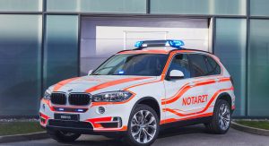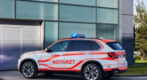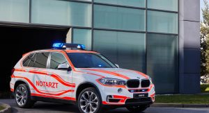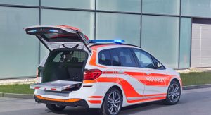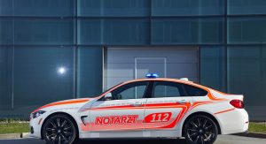 We’re still not convinced a four-door coupe makes for a good ambulance, but the 326 horsepower and 5-second 0-62 time would at least help it get to the scene (and back to the hospital) in a hurry. Fortunately there are plenty of other models in the BMW lineup that would better serve the purpose, and the manufacturer is displaying several of them inside the hall in Fulda, Germany.