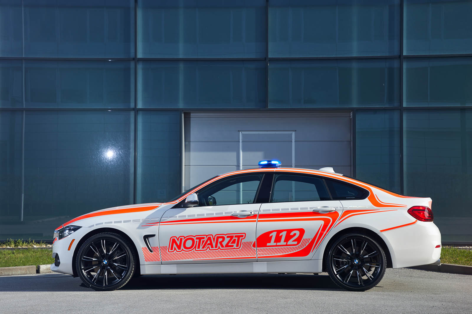 Visitors to the RETTmobil show be greeted at the main entrance by a 440i Gran Coupe, all decked out in eye-catching livery and streamlined strobe lights. Of course the form itself is rather less useful than, say, a 3 Series Touring wagon, but BMW points out that between the four doors and the 17 cubic feet of cargo space, the streamlined sedan is surprisingly versatile.