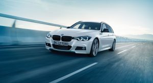 Last but not least is the Edition M Sport Shadow offered for the 2018 3-Series Sedan and Touring. It includes black headlight and taillight inserts and a black kidney grille just like the Edition Sport Line Shadow. Differences include 19-inch M alloy wheels finished in Orbit Grey, M sports suspension and an M aerodynamics package. The cabin is identified with Dark Aluminum Carbon, an M leather-covered steering wheel, Anthracite roof lining, M door sills and a new Sport+ driving mode.