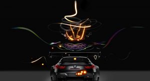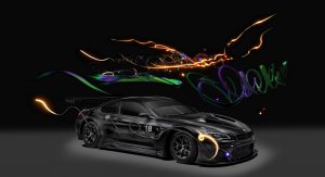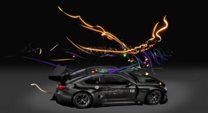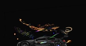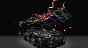 The BMW M6 GT3 race car features its original carbon black, although Cao Fei’s holistic use of a non-reflective black also incorporates the car into the possibilities of the digital world, according to BMW.