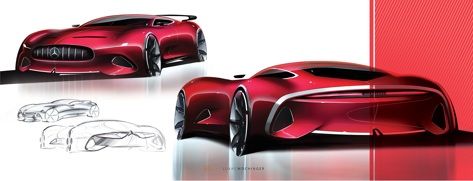 As with two of the most recent Mercedes concepts, the Mercedes-Maybach 6 and AMG GT Concept, Wochinger’s car features narrow headlights as well as a taillight that stretches across most of the rear, just like the Maybach 6. The car also features an evolution of AMG’s current Panamerican front grille.