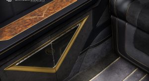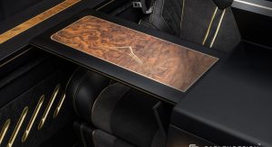 Elsewhere, Carlex’s creation includes blinds for the windows, a full stereo system and two Sony TV displays. The seats themselves are trimmed in glorious black leather and carbon fiber while the entire cabin is made all the more luxurious with a plethora of gold trimmings.