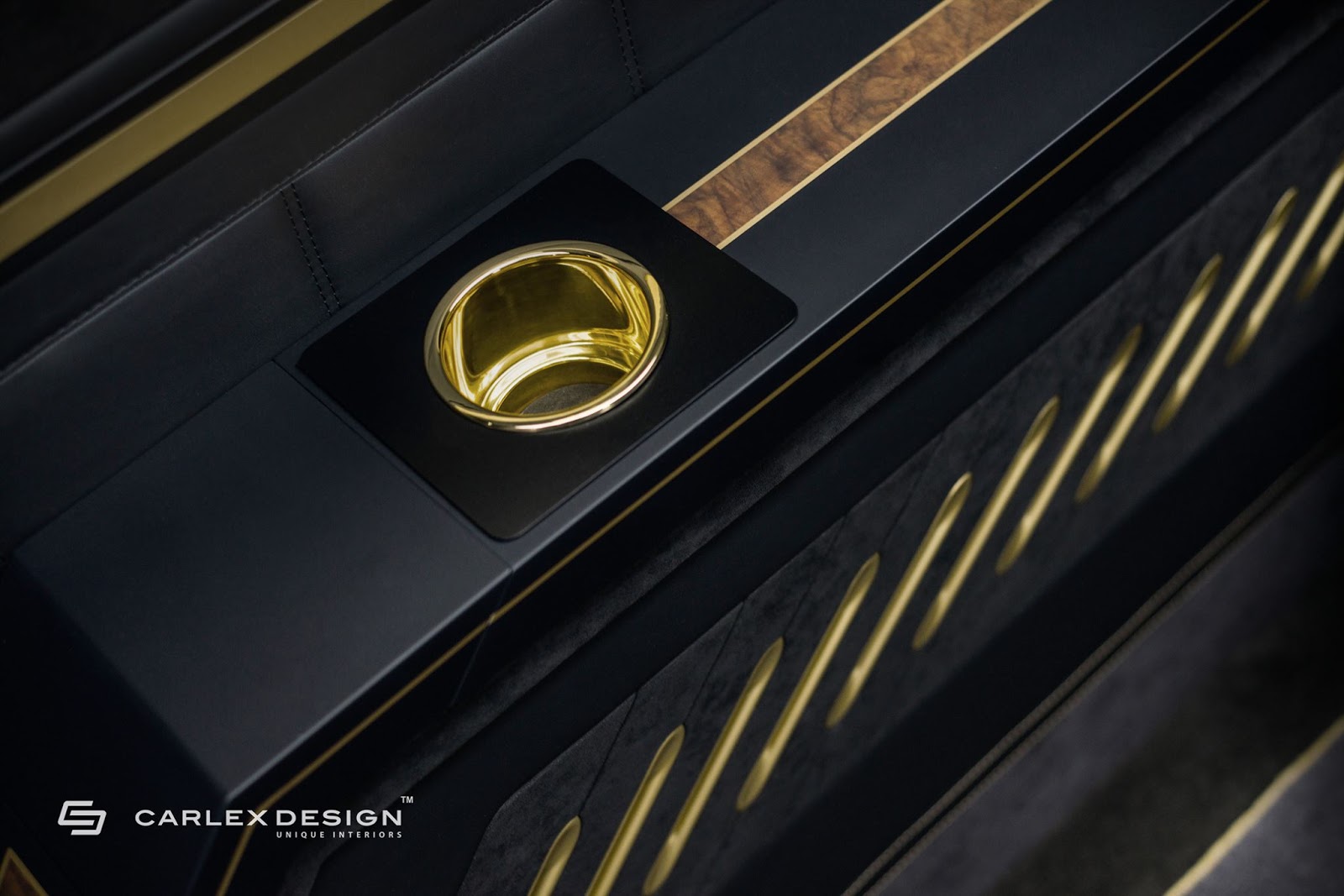 Elsewhere, Carlex’s creation includes blinds for the windows, a full stereo system and two Sony TV displays. The seats themselves are trimmed in glorious black leather and carbon fiber while the entire cabin is made all the more luxurious with a plethora of gold trimmings.