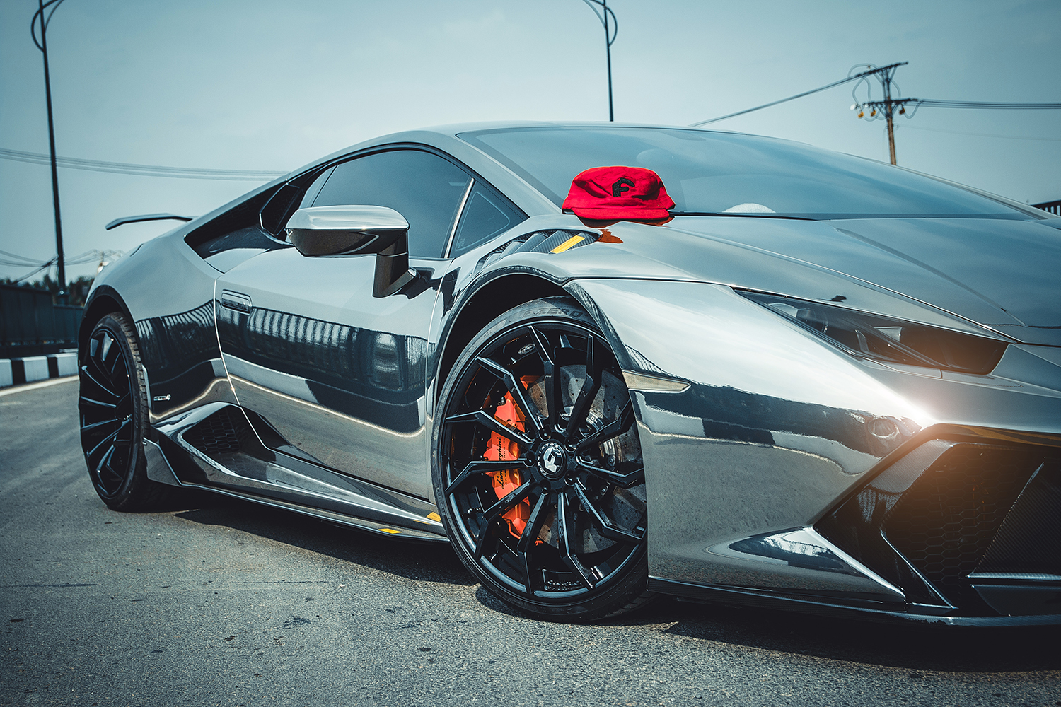This Chrome-wrapped Lamborghini Huracan is not just sitting on a set of 21″ black Forgiato 2.0 Navaja-ECX wheels, but is also wearing Vorsteiner’s Novara body kit, which is comprised of an integrated front spoiler, ventilated front fenders, side sill extension blades, rear bumper with integrated diffuser and a fixed rear wing.
