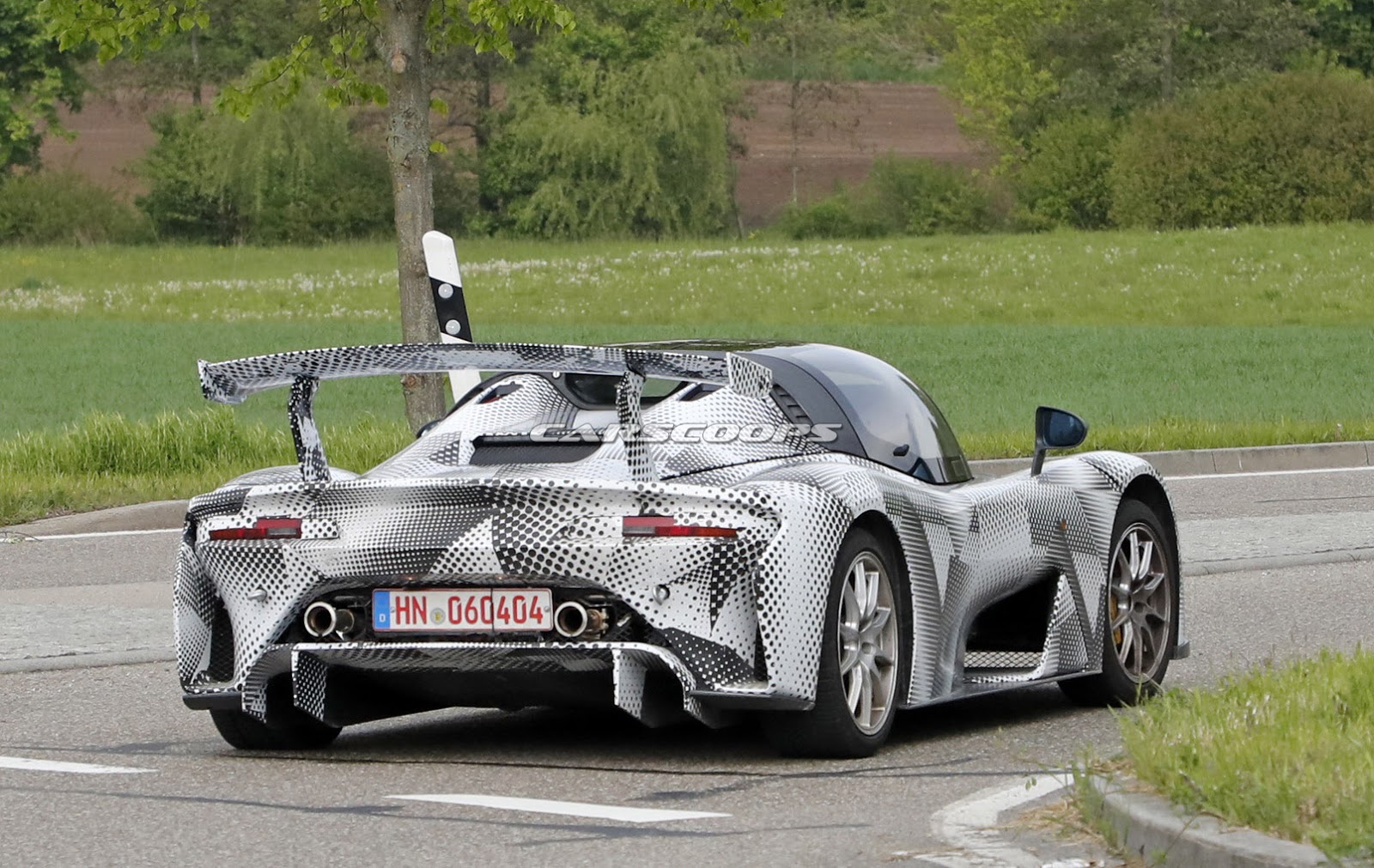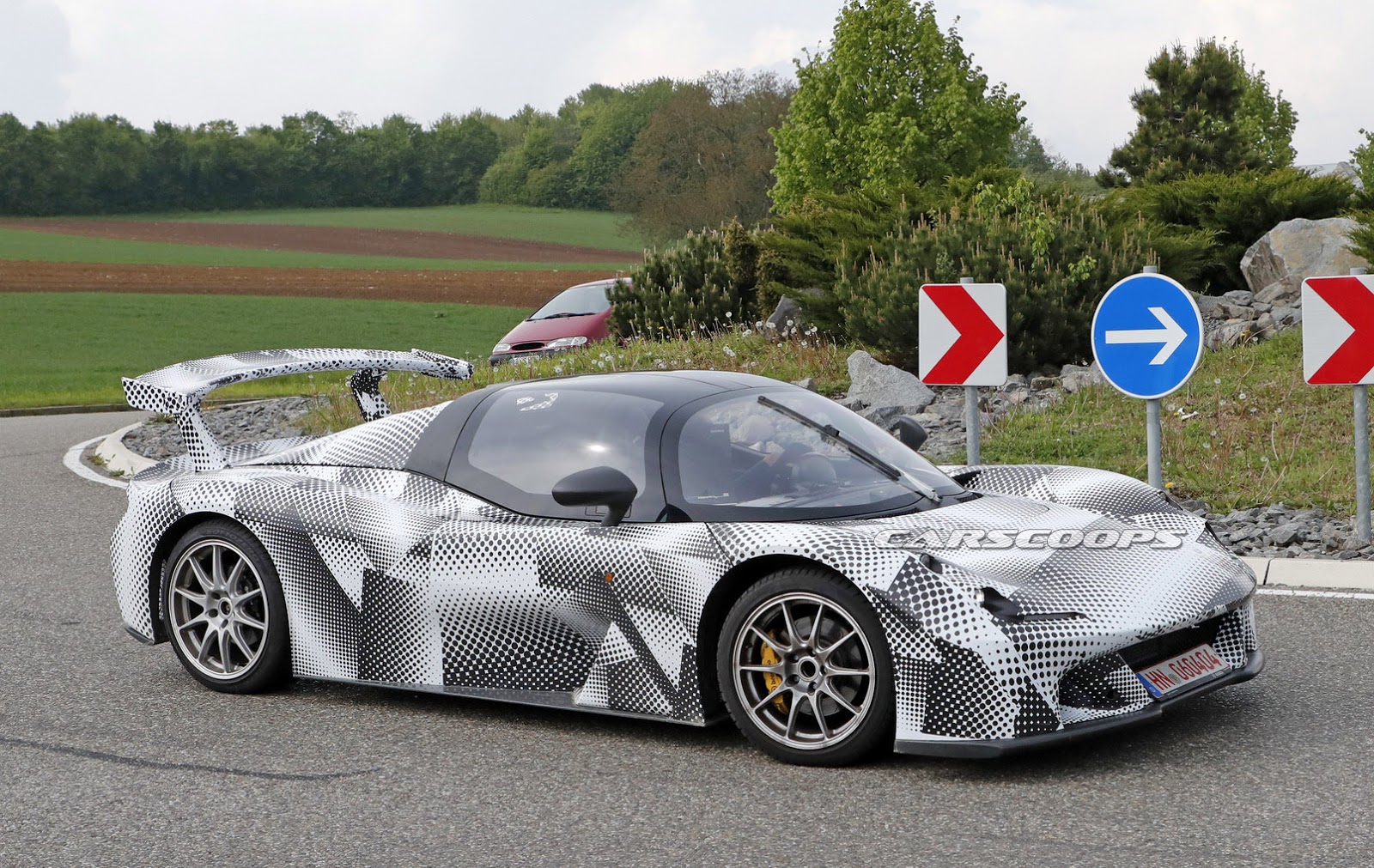 Though still heavily camouflaged, this pre-production prototype for the as-yet unnamed Dallara supercar looks like a more compact Group C racer than other (barely) street-legal road car this side of the Radical RXC or Dauer 962.