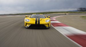 The Ford GT’s 3.5-litre EcoBoost V6 engine is the most powerful of the family, with 647hp, and features among other things an anti-lag system which works by keeping the throttle open when the driver is off the accelerator. The fuel injectors are off but the turbo keeps spinning so the engine will respond faster as soon as the driver hits the gas pedal.