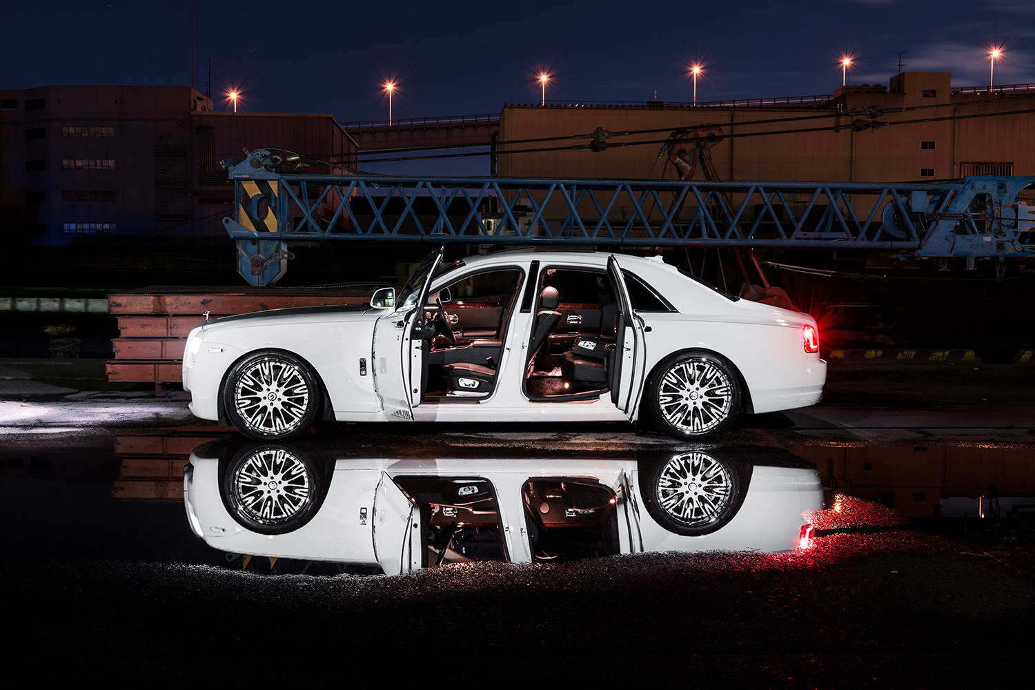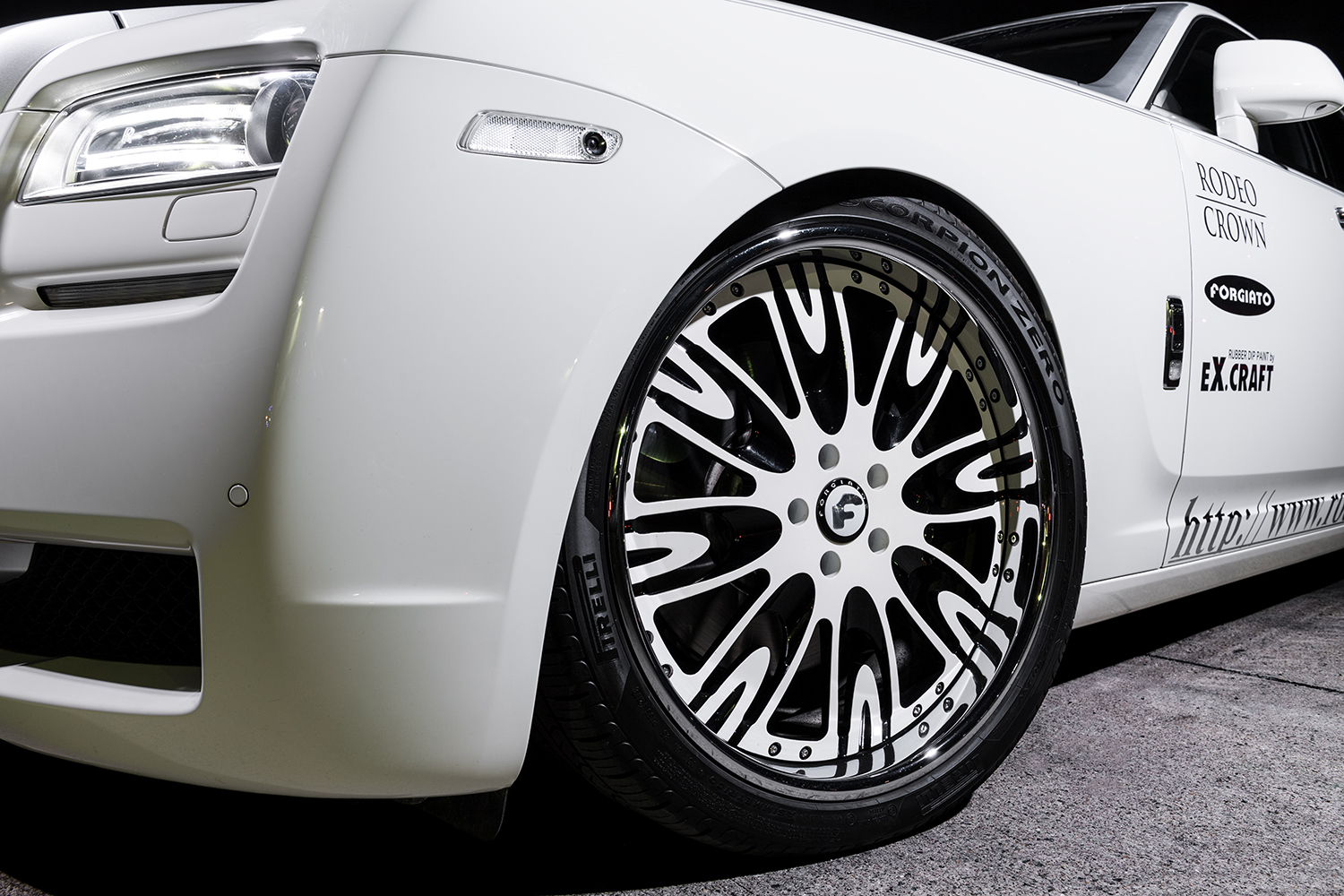 Situated in Japan (where else?), this white and silver luxury sedan is wearing 24-inch Forgiato Capolavaro-ECL wheels with white spokes and chrome rims to compliment the bodywork. The result is a very different take on the Rolls than even the most heavily personalized by the factory’s own Bespoke division in Goodwood.