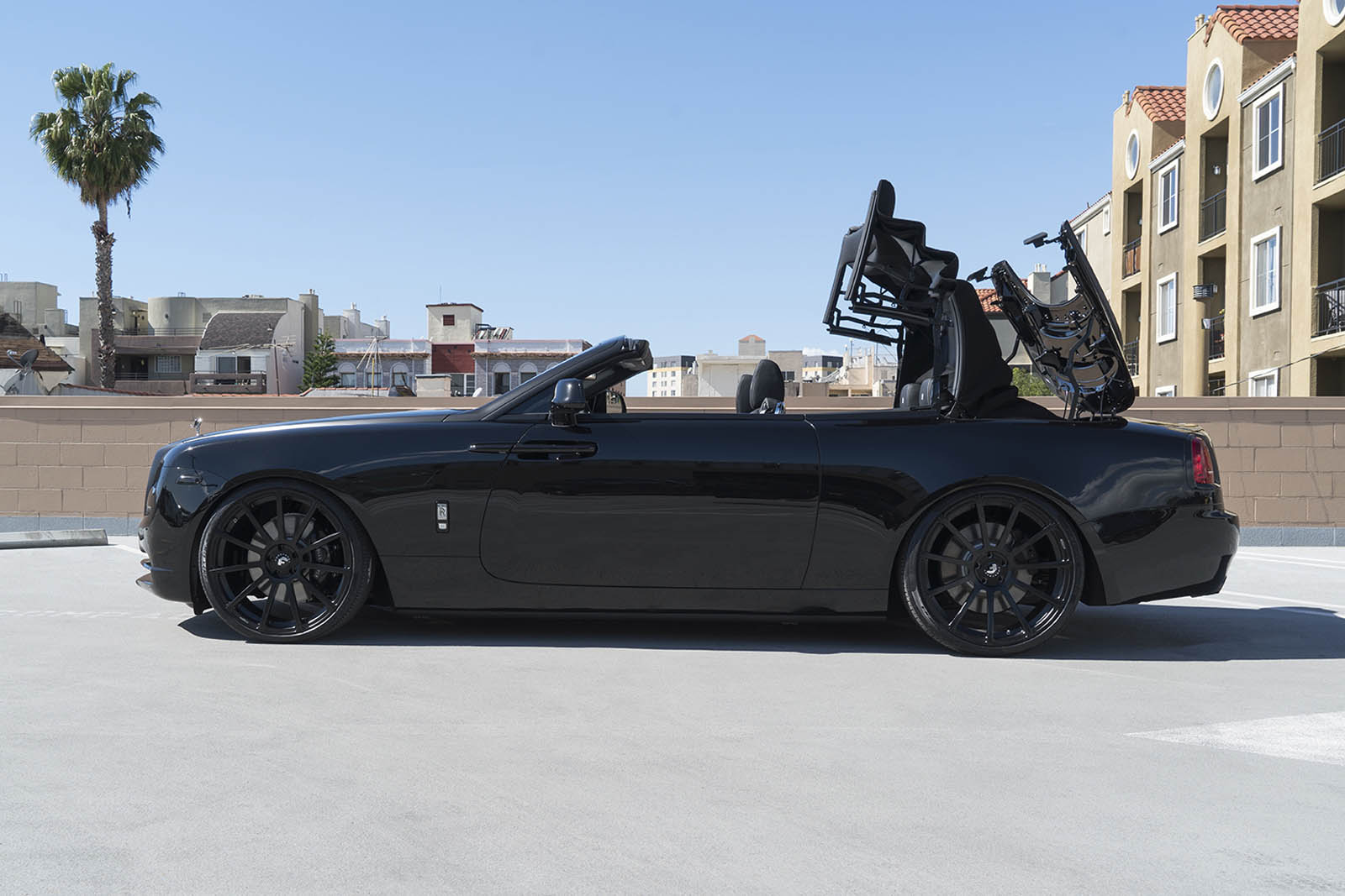 As if that weren’t enough, we’ve also included another Rolls-Royce from the same series – this time a Dawn convertible – that’s been completely murdered out by LA tuner RDB, with a rather different set of Forgiato Undice wheels (in the same 24-inch diameter) done up all in black to match.