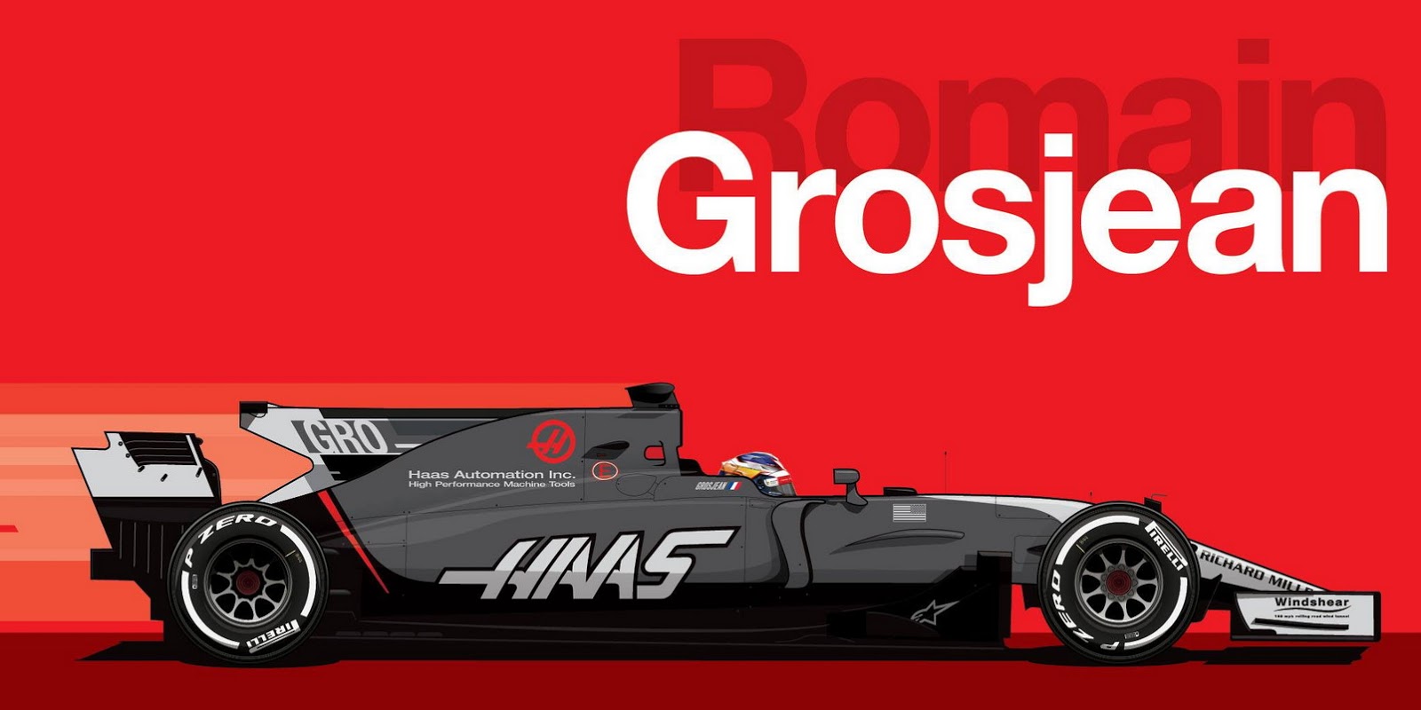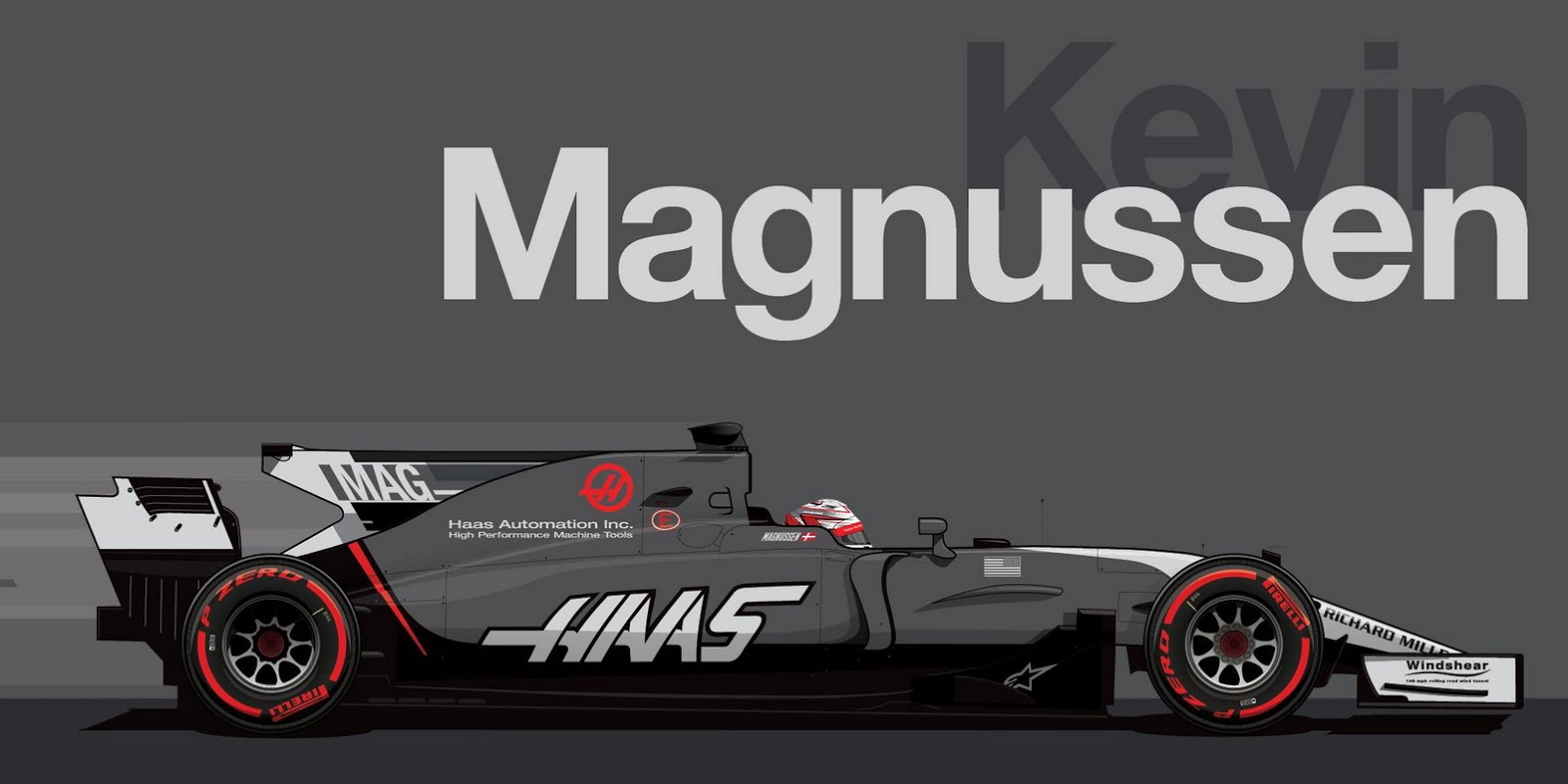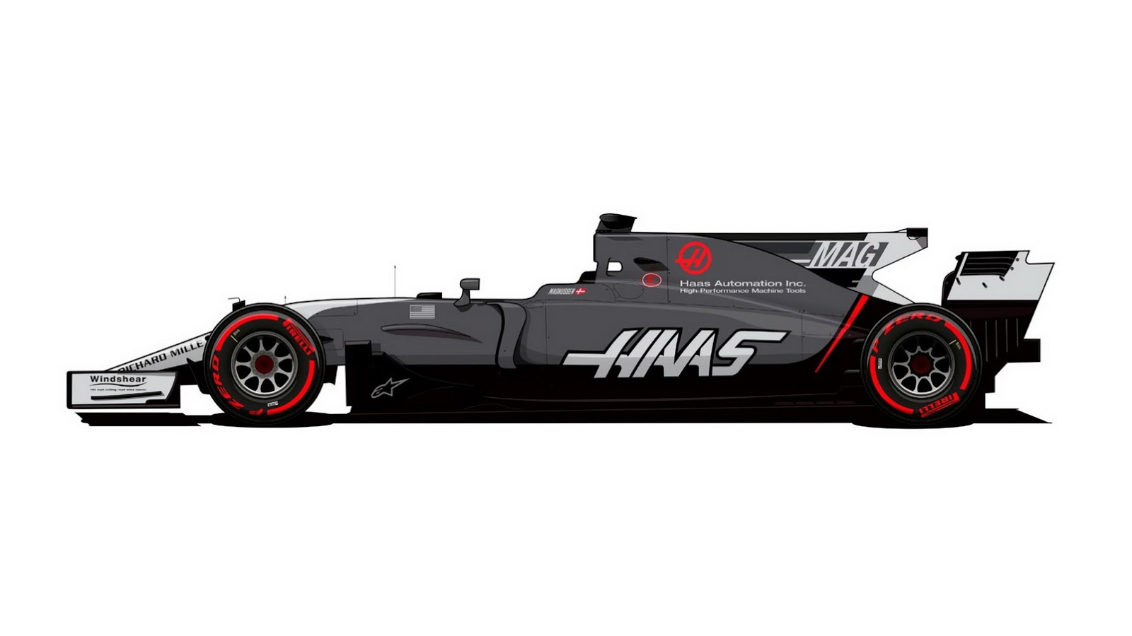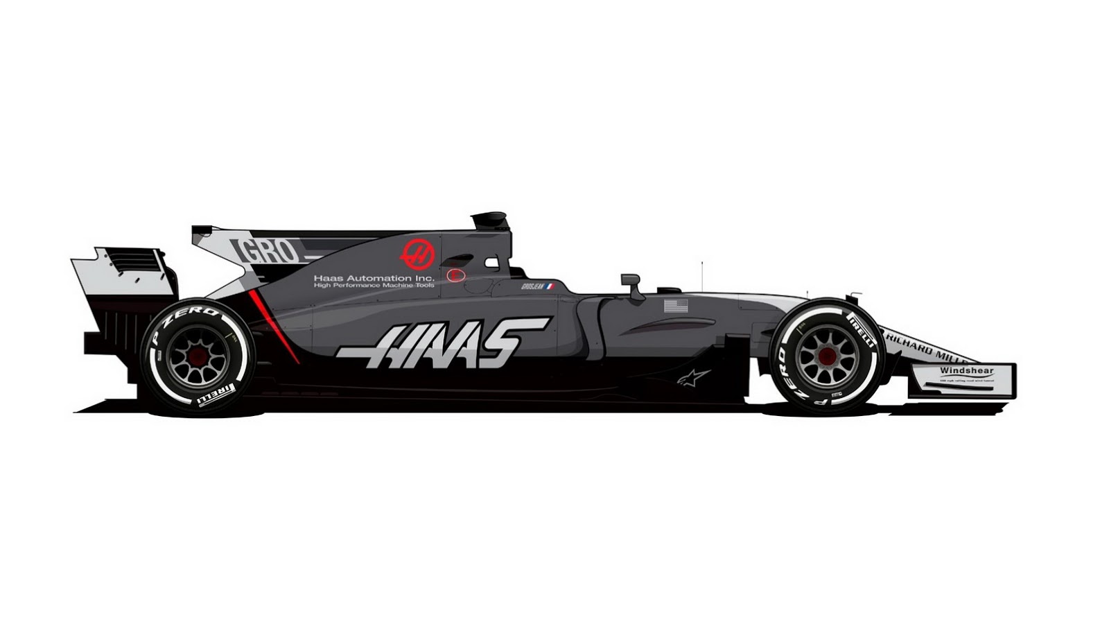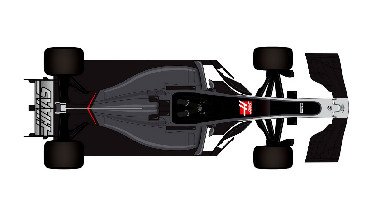 Haas has kept the angular red accent mark on the rear of their VF-17 racer, adopted since their inaugural season, while adding easier-to-read driver identifiers to the shark fin.