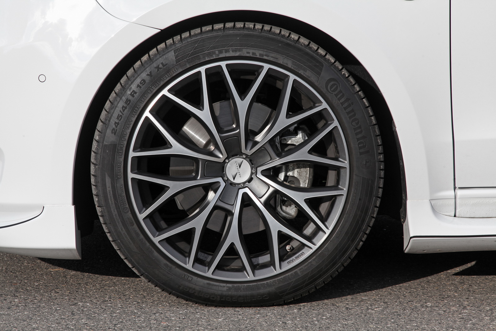 An aftermarket set of wheels, 19-inch in size, wrapped in 245/45 ContiSportContact tires, rounds up the list of exterior updates.