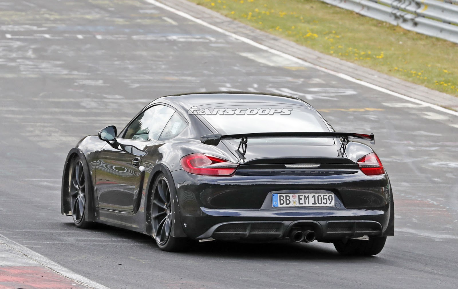 With the previous Cayman GT4 getting 385hp, it’s safe to expect over 400hp from the new version. One other thing that can’t go unnoticed is the wheel arches that are filled with foam, making the car look wider.
