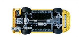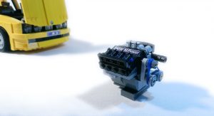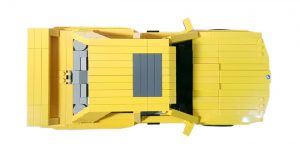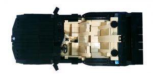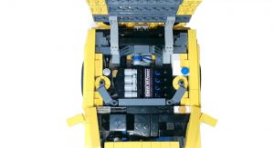 The trunk can also be opened, and so can the hood, which hides a replica of the original engine, made from the same small bricks.