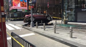 A man was arrested on Thursday afternoon after his speeding vehicle struck a group of pedestrians on the sidewalk at Times Square, NY.
