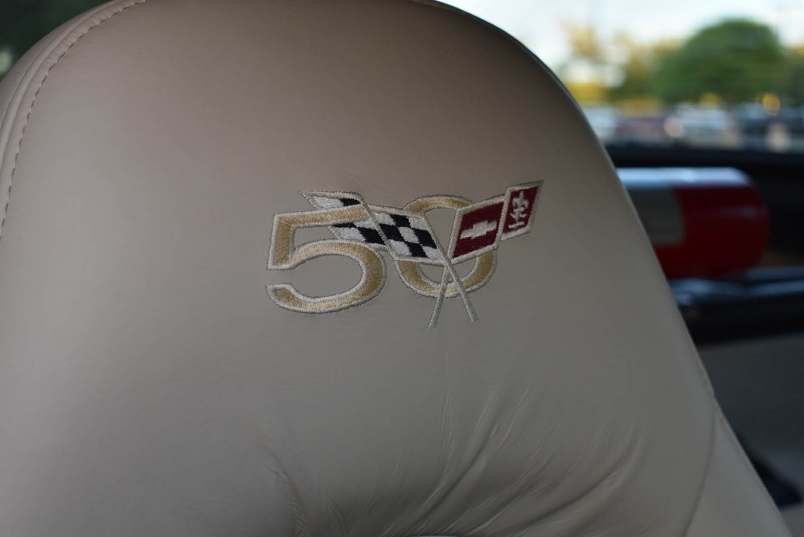 Decked out in a deep wine red with gold wheels and 50th-anniversary badging, the very special Vette features a 5.7-liter V8 rated at 350 horsepower, magnetorheological suspension, unique graphics, emergency lighting bar, on-board fire extinguisher, roll cage, racing harnesses… the works.