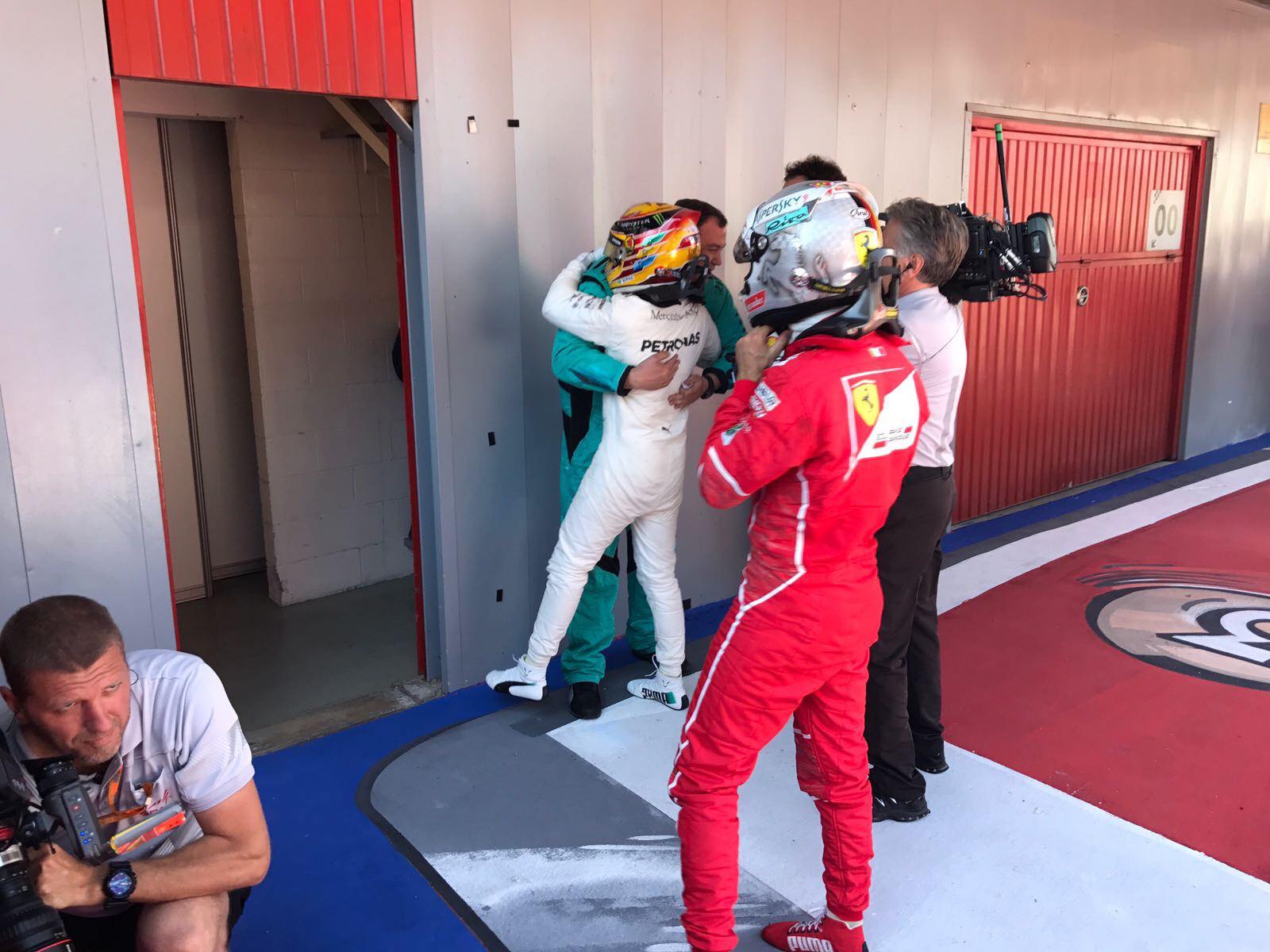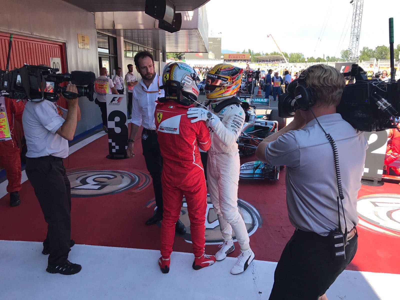 Vettel was forced to respond three laps later and after exiting the pits side-by-side with Hamilton, the two made contact in the middle of turn 1 and the Brit was pushed wide. While Vettel hung onto the lead for six laps, Hamilton eventually made the winning move on his faster tires by overtaking the four-time world champion down the pit straight on lap 44.