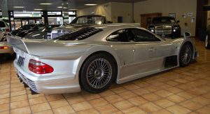 It was nominally styled to resemble the road-going CLK coupe, but was closer in execution to a Le Mans Prototype. In the middle of its lightweight chassis sat a naturally aspirated 6.9-liter V12, sending 604 horsepower and 572 lb-ft of torque to the rear wheels through a six-speed sequential gearbox. That was enough to send it rocketing to 62 in 3.8 seconds and on to a top speed quoted at 214 miles per hour – blindingly fast, especially by late-’90s standards.