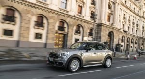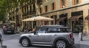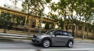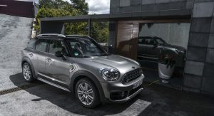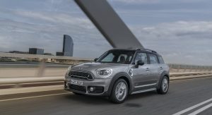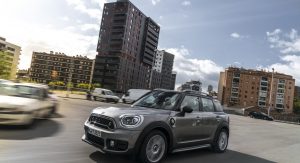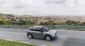 In total, this Mini PHEV puts down 165 kW (224 PS / 221 HP) and 385 Nm (284 lb-ft) of torque, enabling you to get from 0 to 62 mph (100 km/h) in 6.8 seconds while returning as much as 134.5 mpg UK (2.1l/100 km / 112 mpg US).