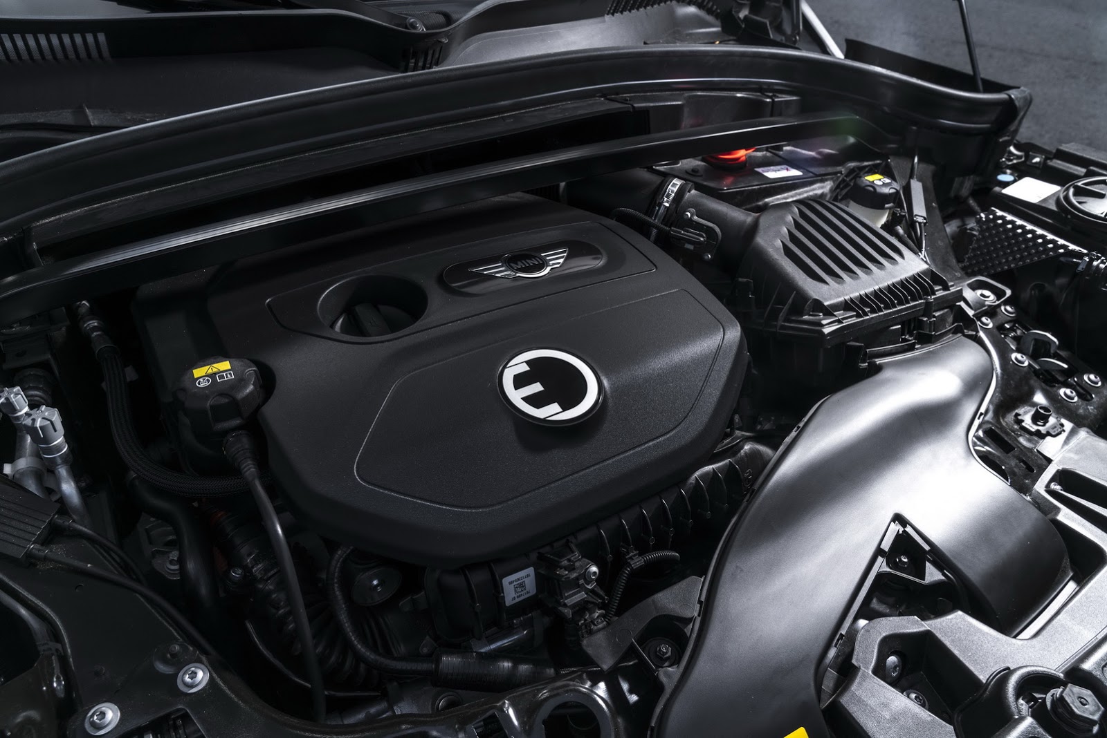 In total, this Mini PHEV puts down 165 kW (224 PS / 221 HP) and 385 Nm (284 lb-ft) of torque, enabling you to get from 0 to 62 mph (100 km/h) in 6.8 seconds while returning as much as 134.5 mpg UK (2.1l/100 km / 112 mpg US).