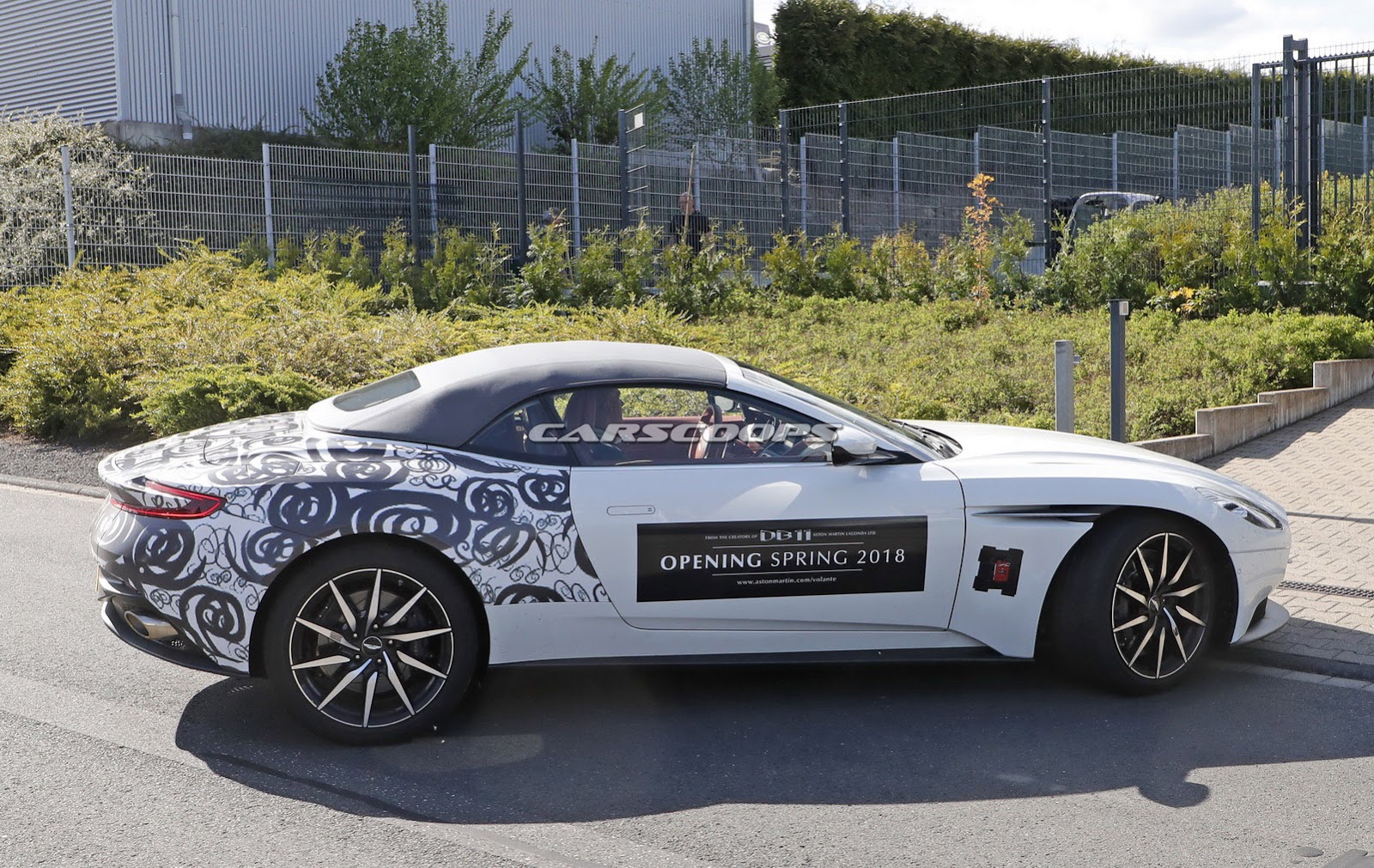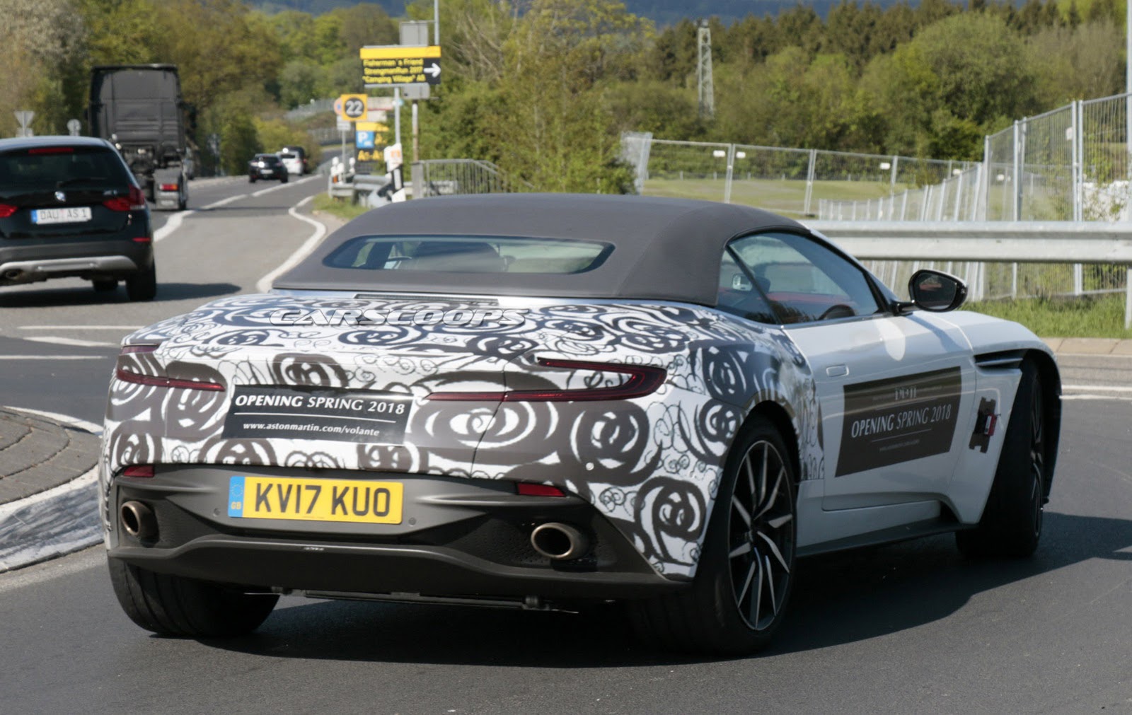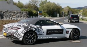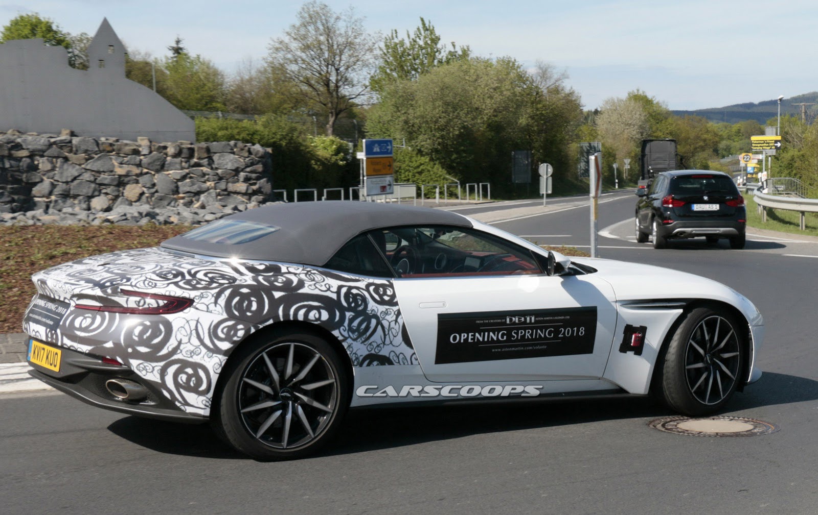 Spotted while undergoing testing at the Nürburgring with minimal camouflage is the forthcoming convertible version of the luxury grand tourer, which will incorporate a folding fabric structure like so many drophead Astons past (rather than a retractable hardtop of some kind).