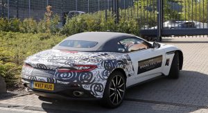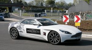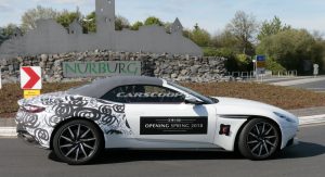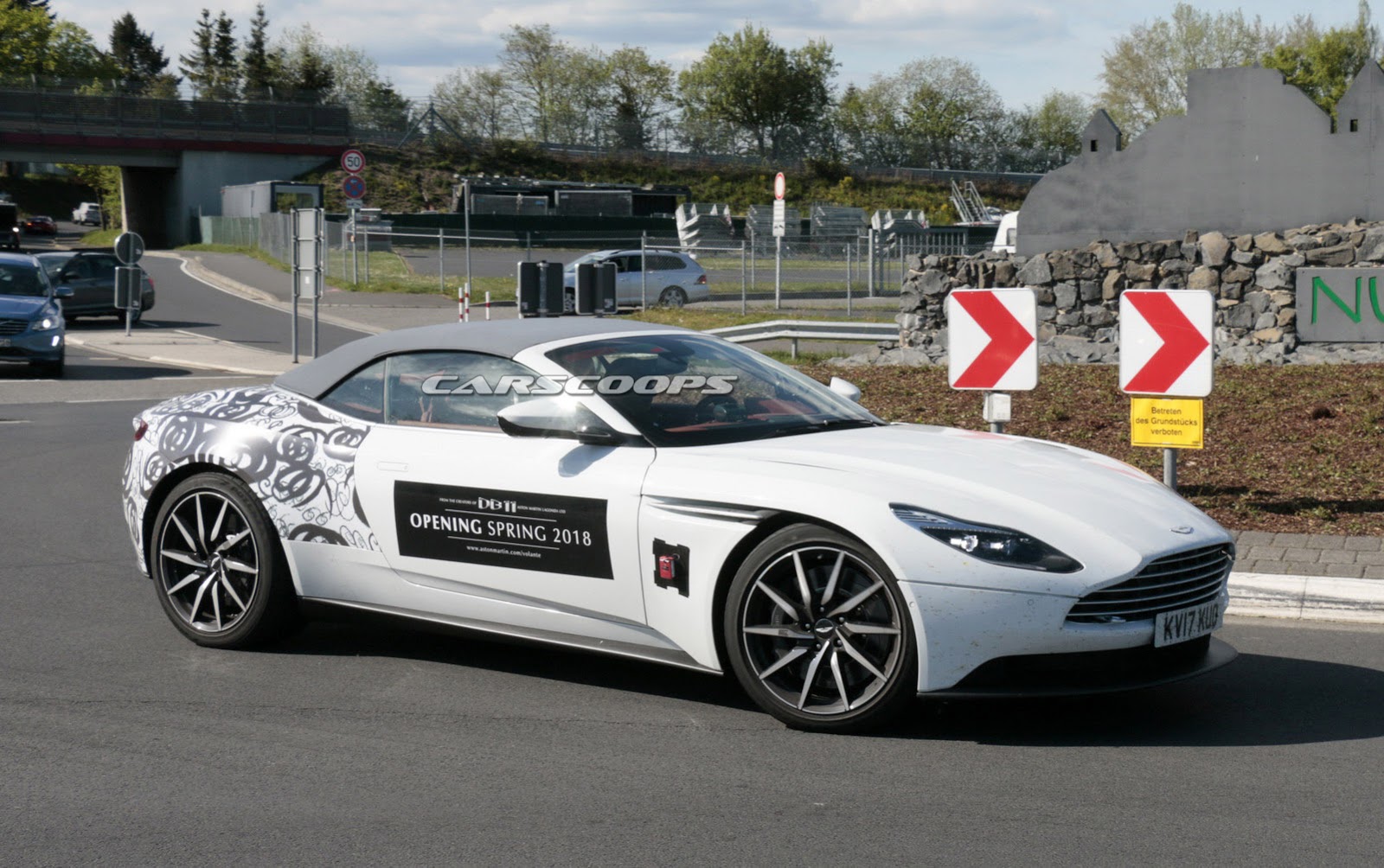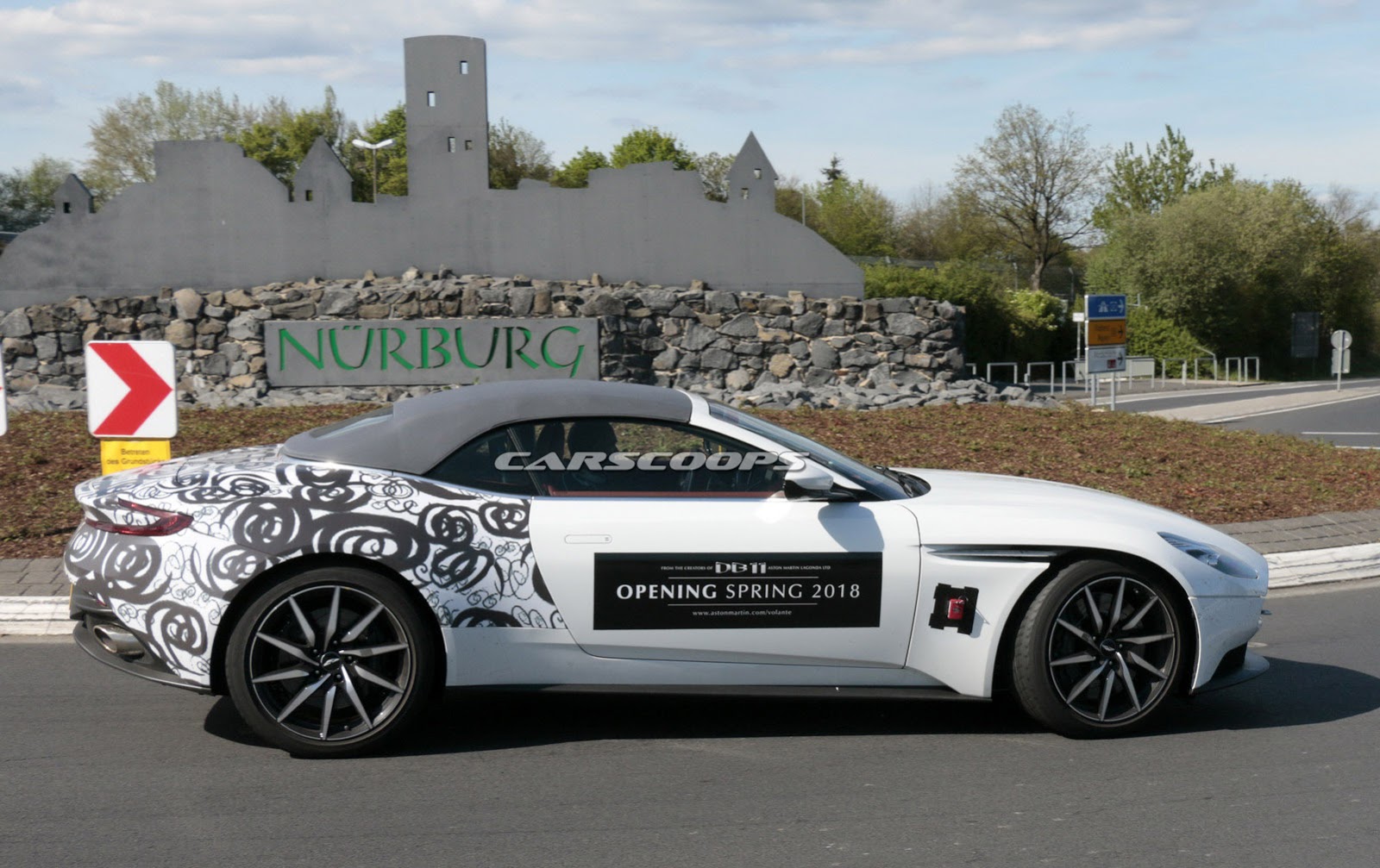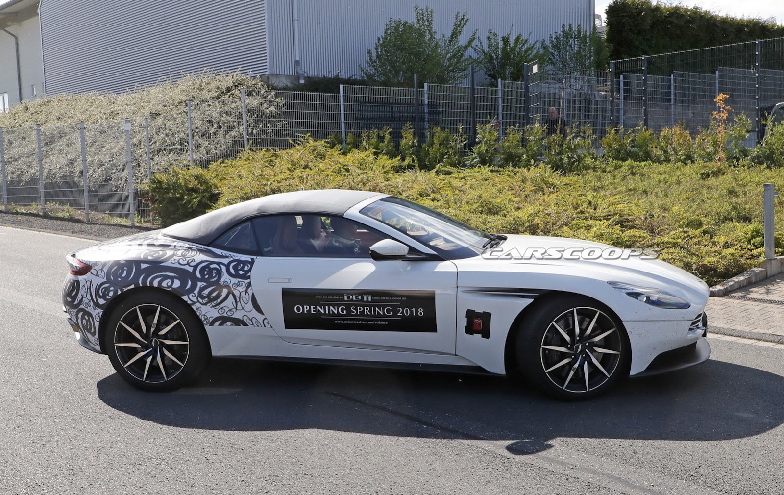 Spotted while undergoing testing at the Nürburgring with minimal camouflage is the forthcoming convertible version of the luxury grand tourer, which will incorporate a folding fabric structure like so many drophead Astons past (rather than a retractable hardtop of some kind).
