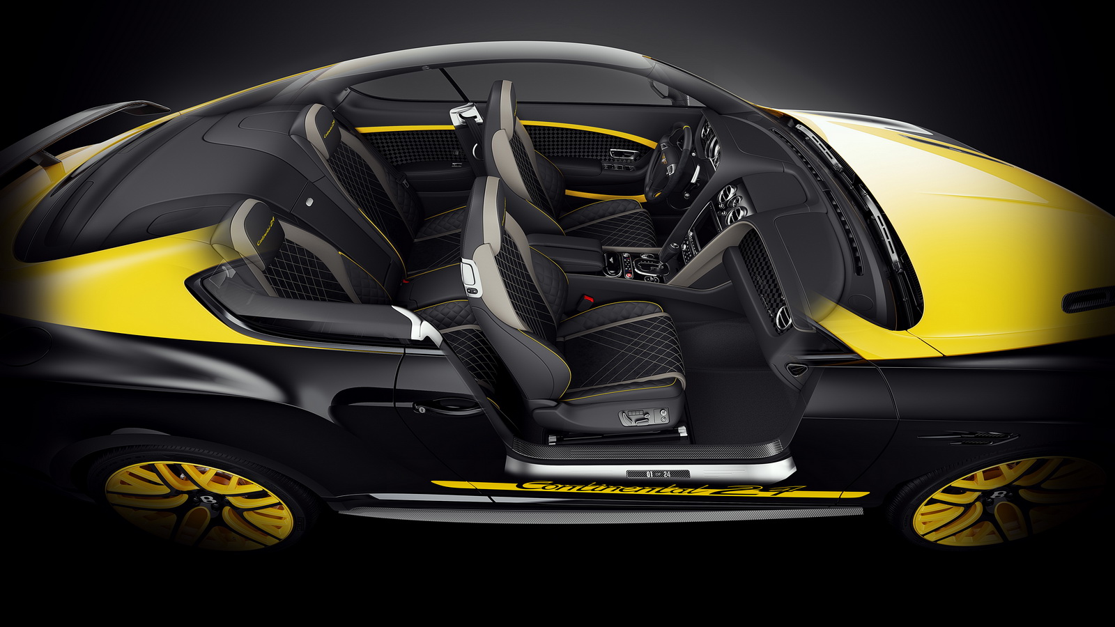 Open the door and you will be greeted by the numerous carbon fiber appliques, Alcantara wrapped seats with diamond quilting, and a special ‘Continental 24’ emblem embossed into the headrests.