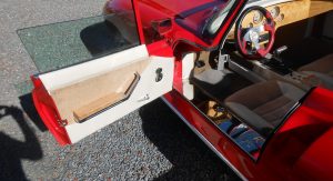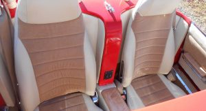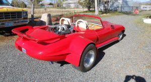 Then of course there’s the big elephant in the room, which is the exterior. The owner of the car started modifying it by removing the roof and putting in a 1974 Cadillac rear frame. Later on, he installed Dolphin gauges, a Hurst gate shifter, added the Datsun 240Z seats and an Alpine radio, among others.