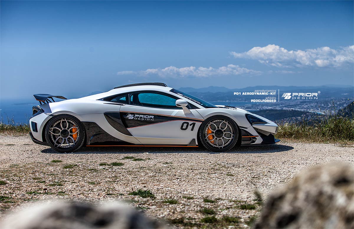 The PD1 aero kit gives the 570S a more aggressive look thanks to side air intakes for the front bumper, side-blades, side skirts (with wings), fender attachments, rear diffuser, a rear wing and a roof scoop.